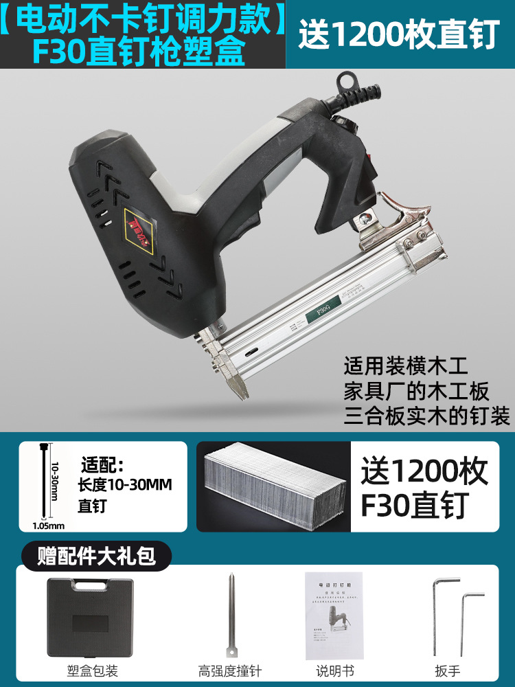 • [못이 끼지 않는 힘 조절 모델] F30 직선 네일건 플라스틱 상자 [직선 못 1200개 + 예비 발사 핀 무료]