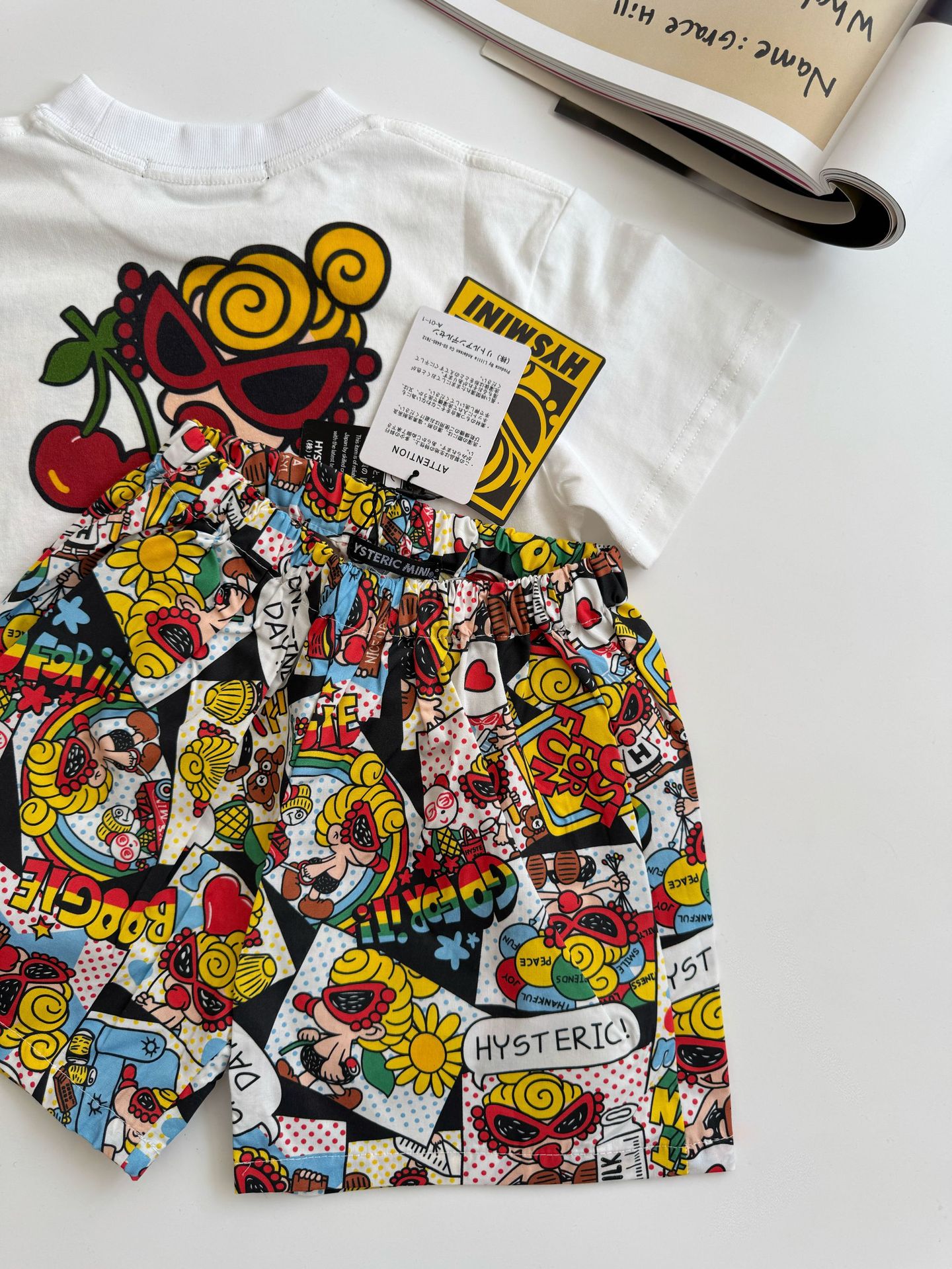 2025 새로운 블랙 슈퍼 조수 브랜드 젖꼭지 체리 좋은 친구 인쇄 짧은 소매 티셔츠 젖꼭지 어린이 최고 재고