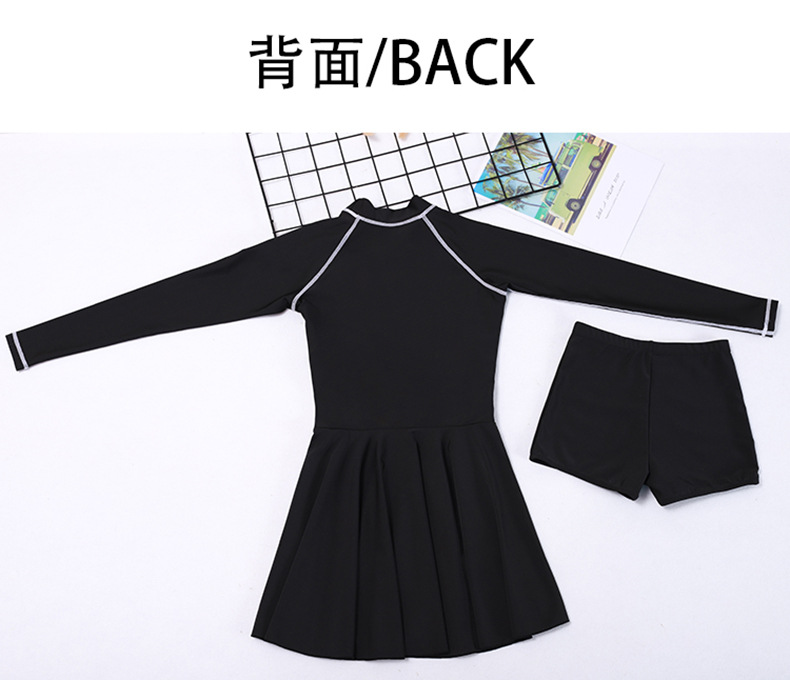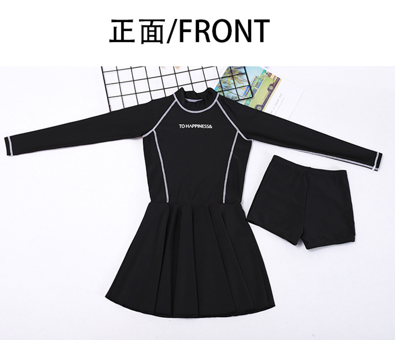 한국 여성용 스윔웨어 스커트형 플랫앵글 스플릿 스타일 보수적 슬림 긴팔 수영복 스포츠 스타일