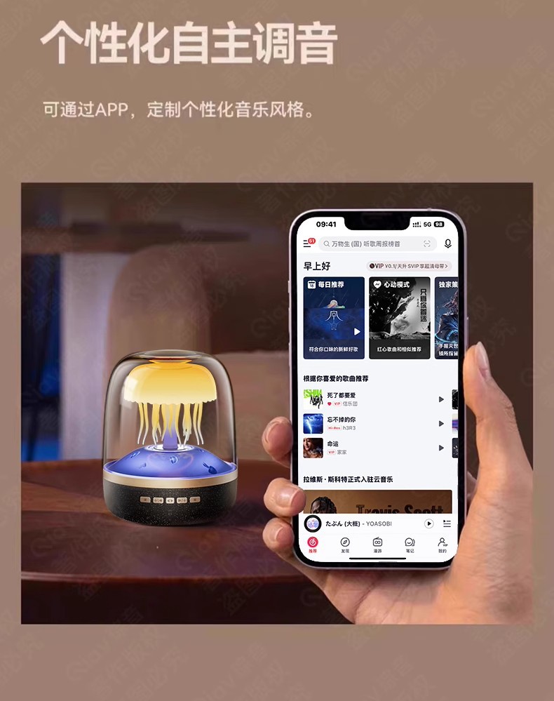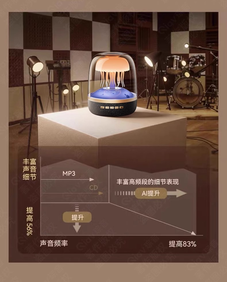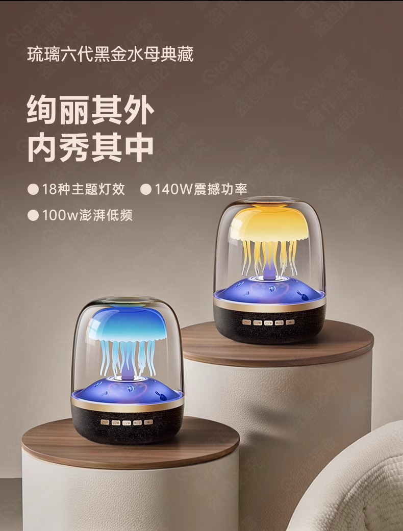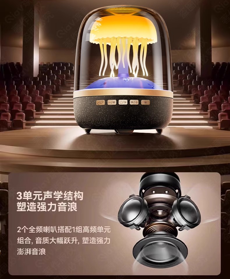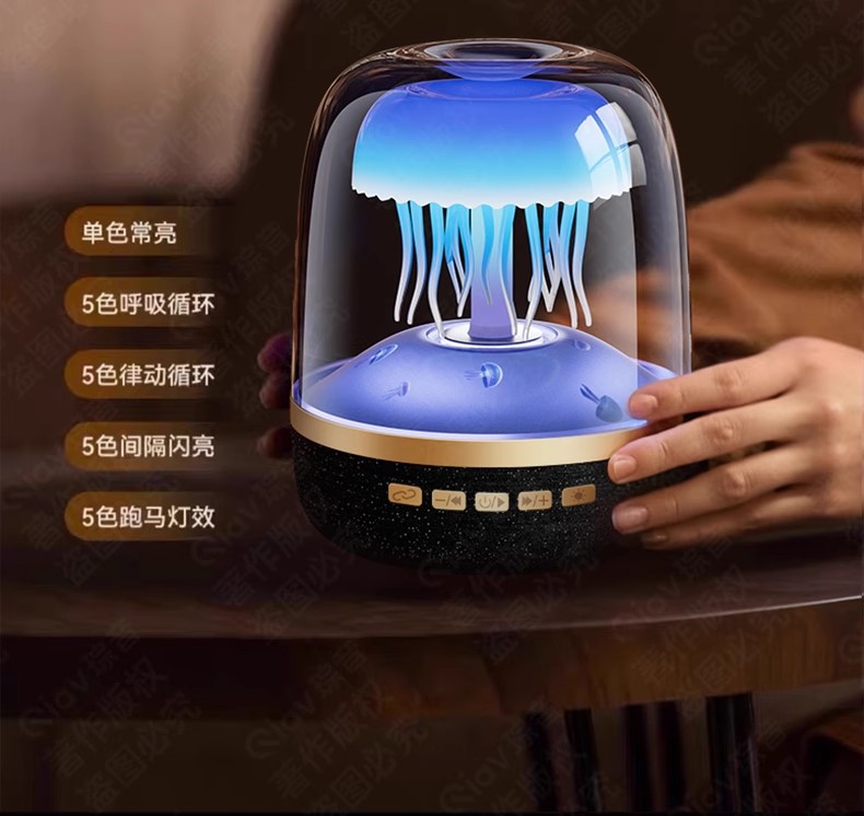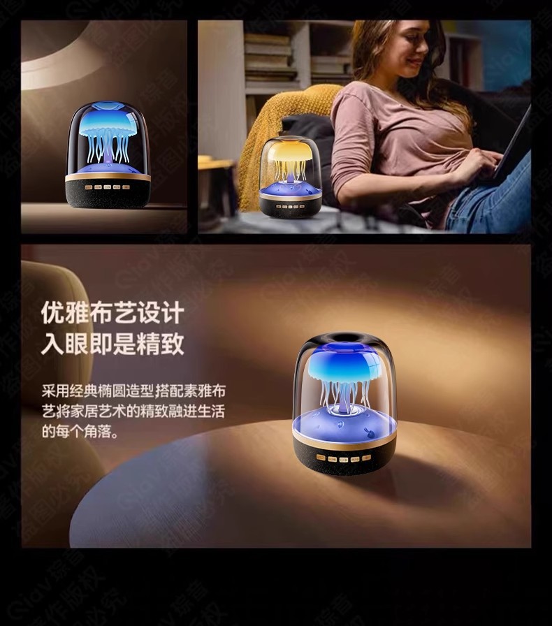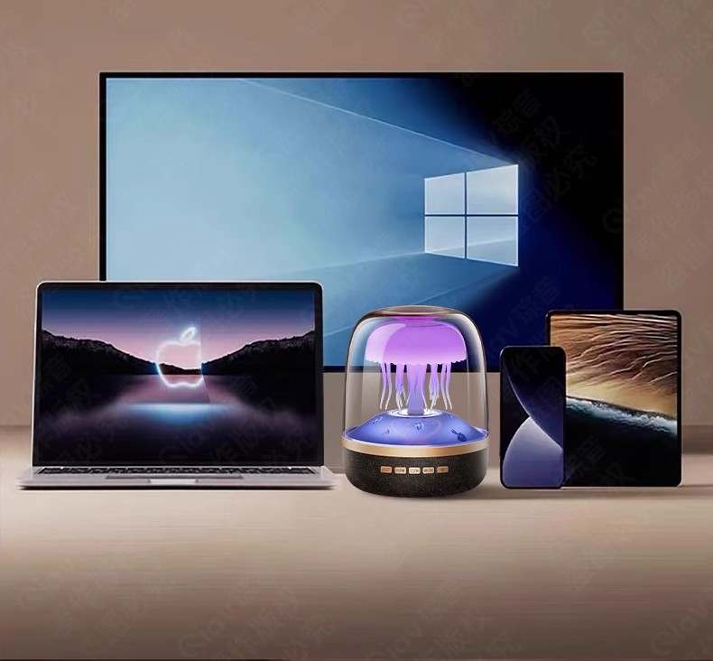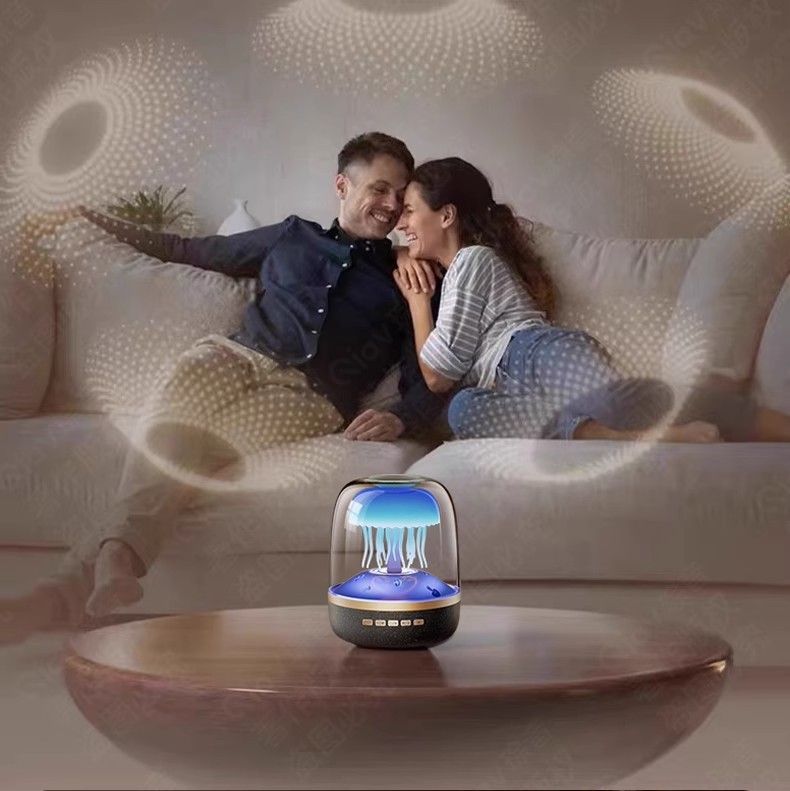 국경 새로운 유리 4 세대 창조적 인 해파리 RGB 램프 데스크탑 서브 우퍼 화이트 노이즈 블루투스 스피커 선물 오디오스토어 가기