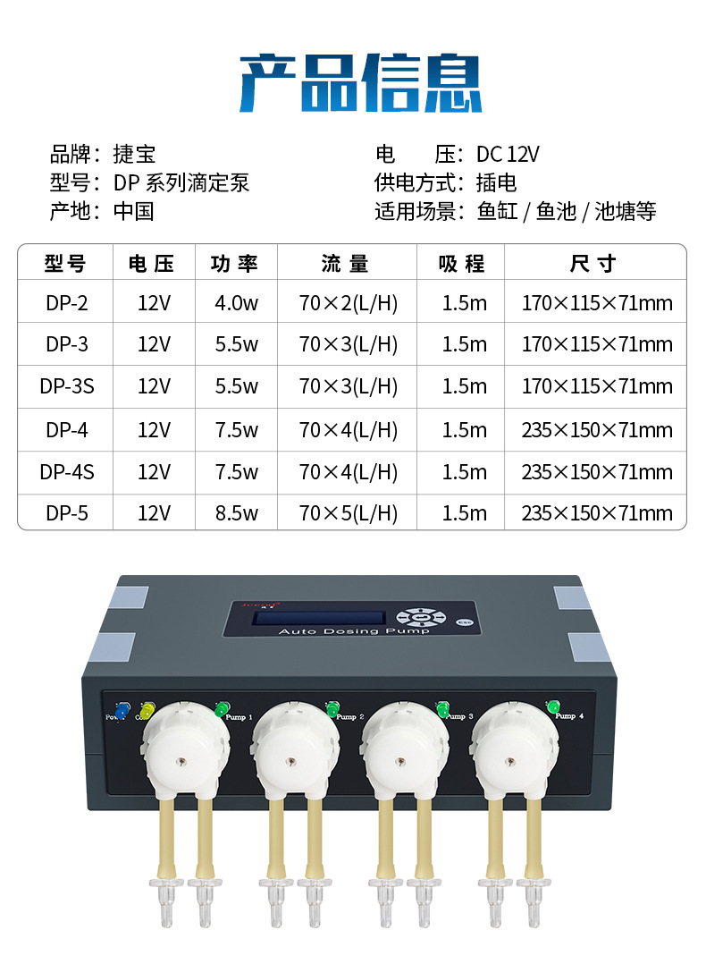 공장 도매 Jiebao DP 소형 정량 펌프 다중 헤드 자동 수족관 어항 해수조 용품 액세서리 정량 펌프