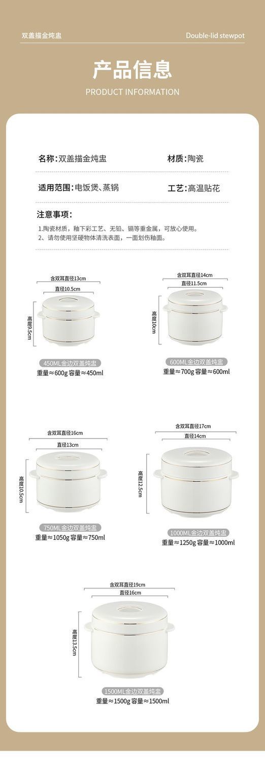 청키 스튜 냄비 세라믹 방수 스튜 냄비 뚜껑 더블 뚜껑 수프 냄비 가정용 새 둥지 크기 내부 냄비