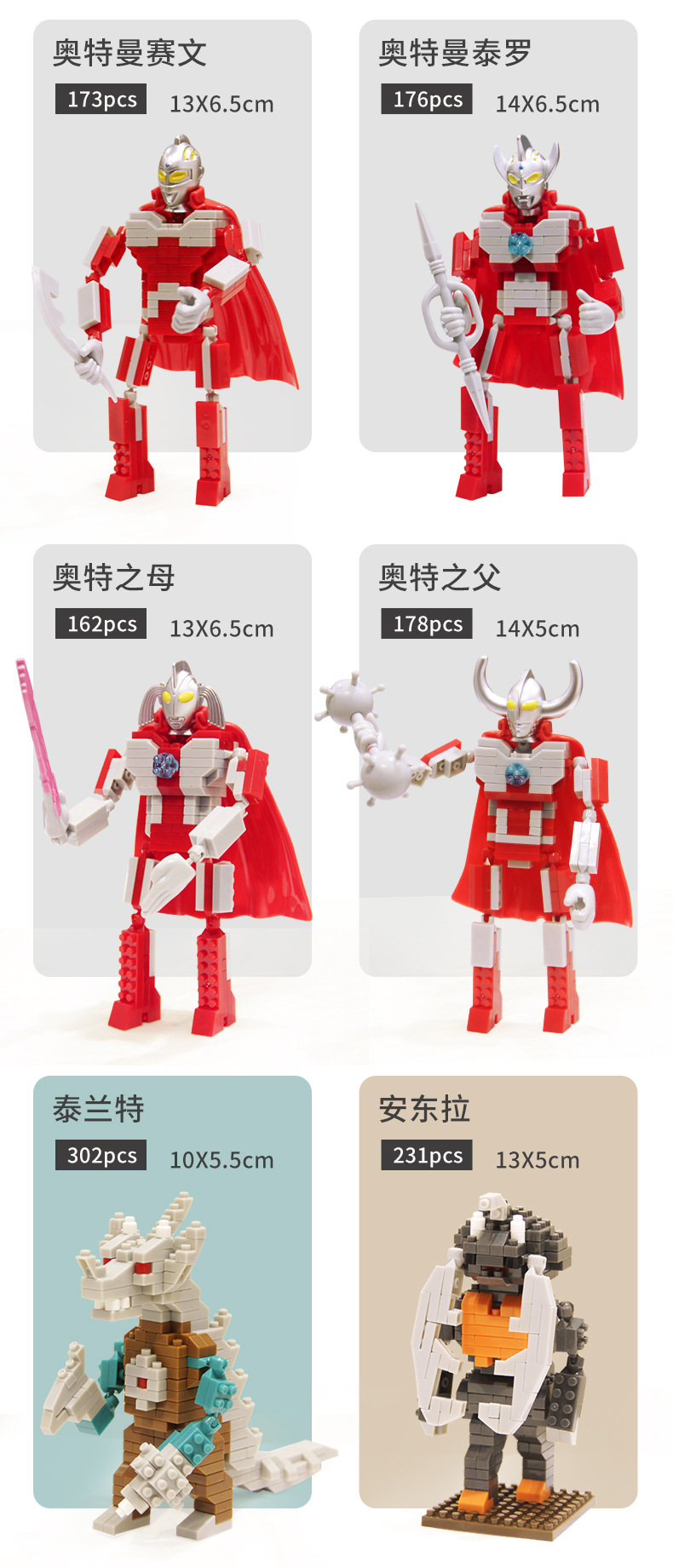 울트라 맨 장난감 레고 작은 입자 마이크로 다이아몬드 빌딩 블록 조립 몬스터 오리지널 타이로 모델 어린이 소년