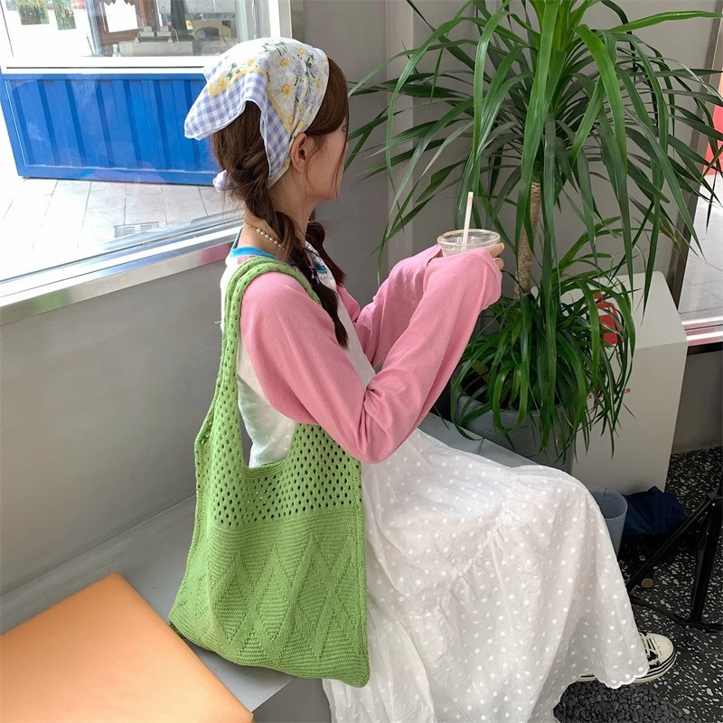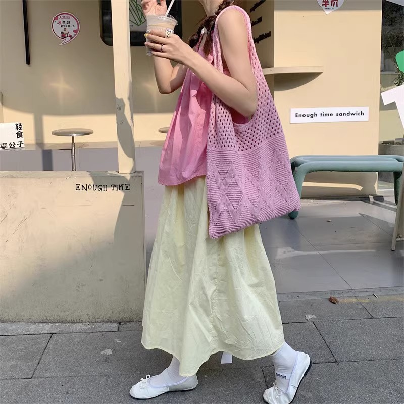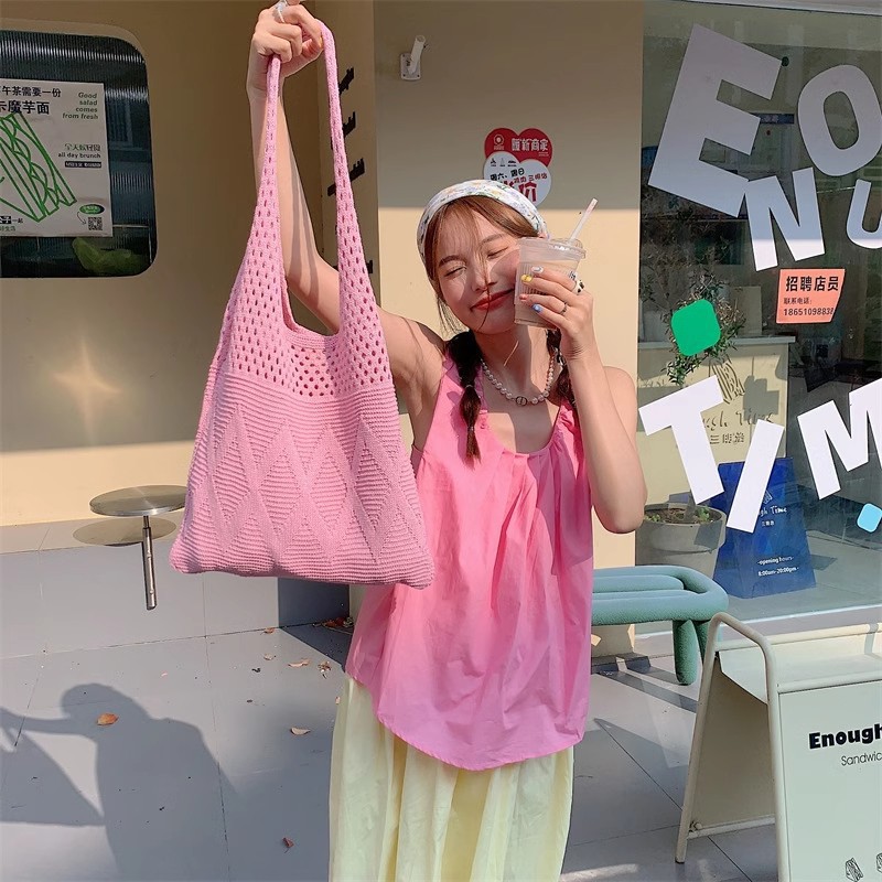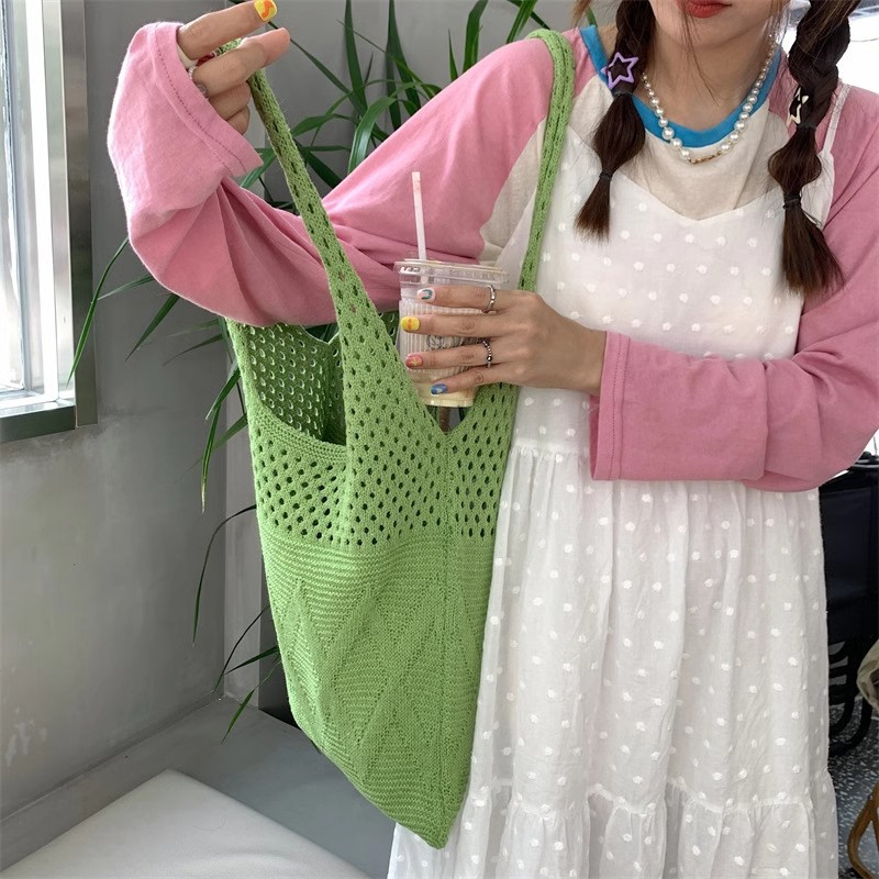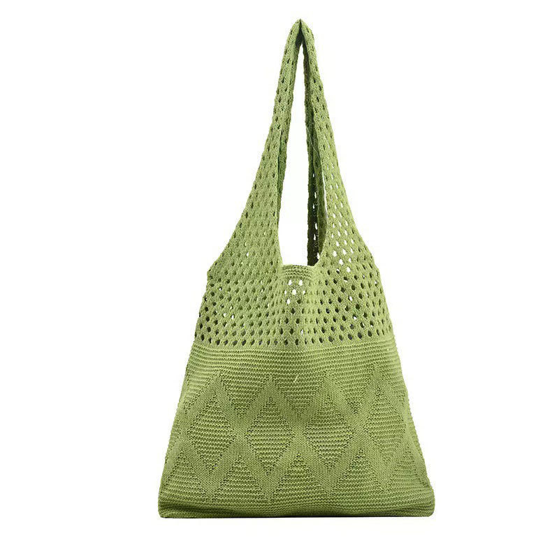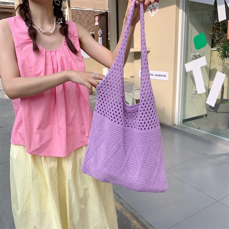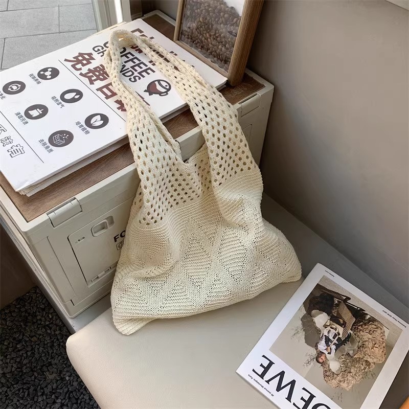 니트백, 여성용 레이지 스타일 숄더백, 예술적인 토트백, 천가방, 캐주얼 겨드랑이백, 손으로 들고 다닐 수 있는 중공 직조 가방
