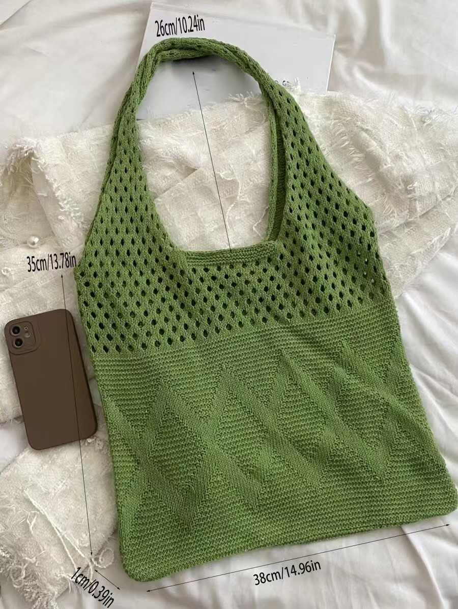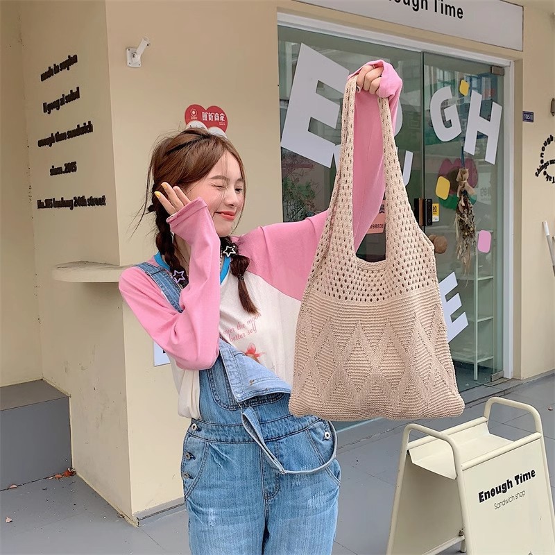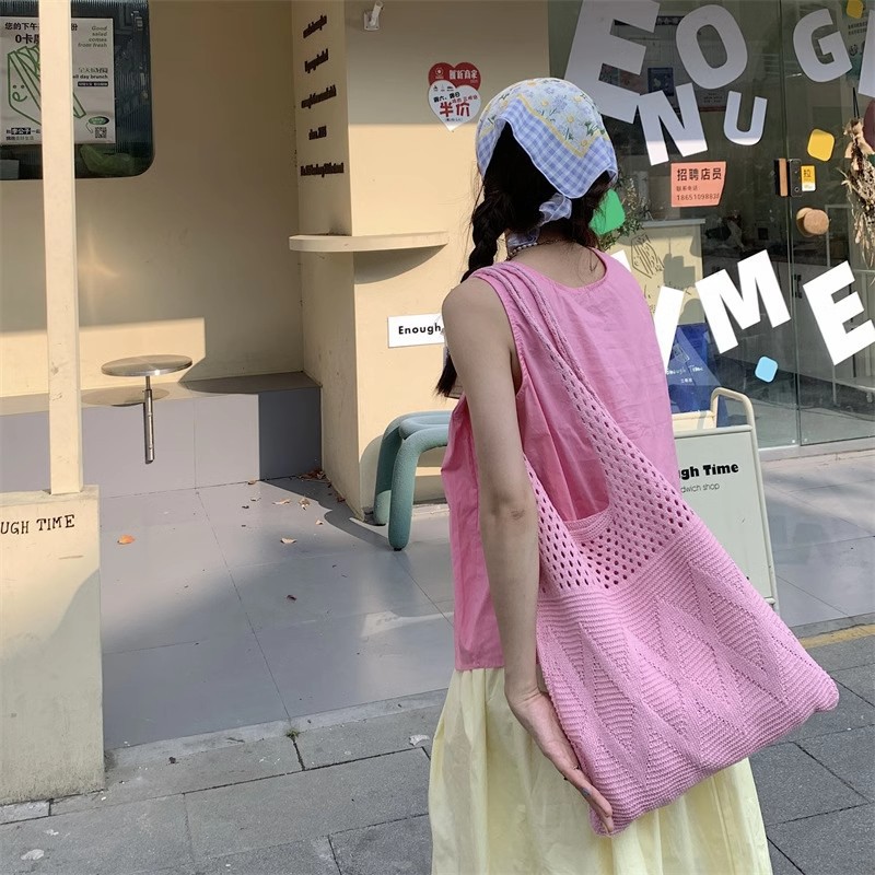 니트백, 여성용 레이지 스타일 숄더백, 예술적인 토트백, 천가방, 캐주얼 겨드랑이백, 손으로 들고 다닐 수 있는 중공 직조 가방스토어 가기