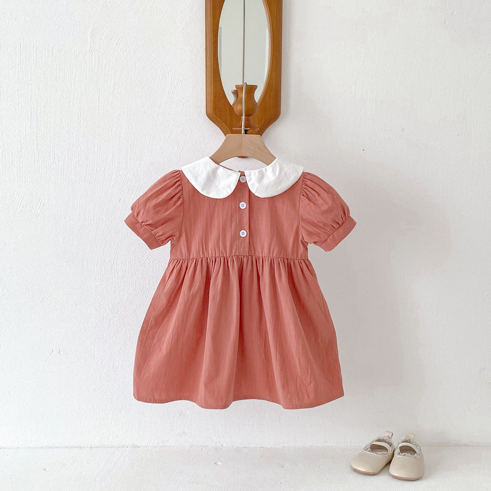여름 한국 스타일 여자 드레스 1-8 세 어린이 곰 수 놓은 인형 칼라 달콤한 아기 소녀 공주 드레스스토어 가기