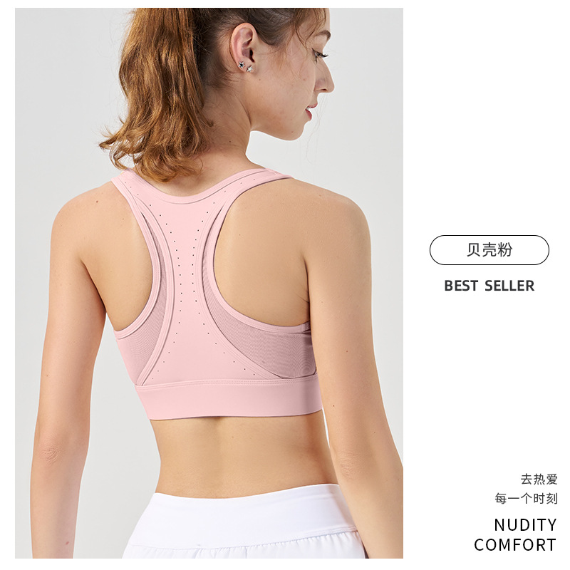 봄여름용 앞지퍼 요가탑 여성용 고정컵 야외 피트니스 브라 고강도 충격방지 누드느낌 스포츠 브라