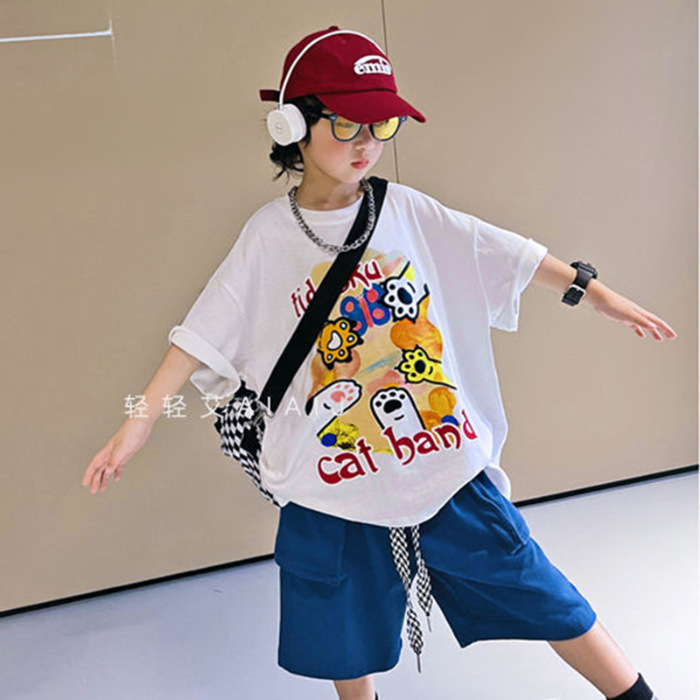 남학생 한국식 반소매 티셔츠 2023 여름 어린이 느슨한 반팔 티셔츠 빅키즈스토어 가기