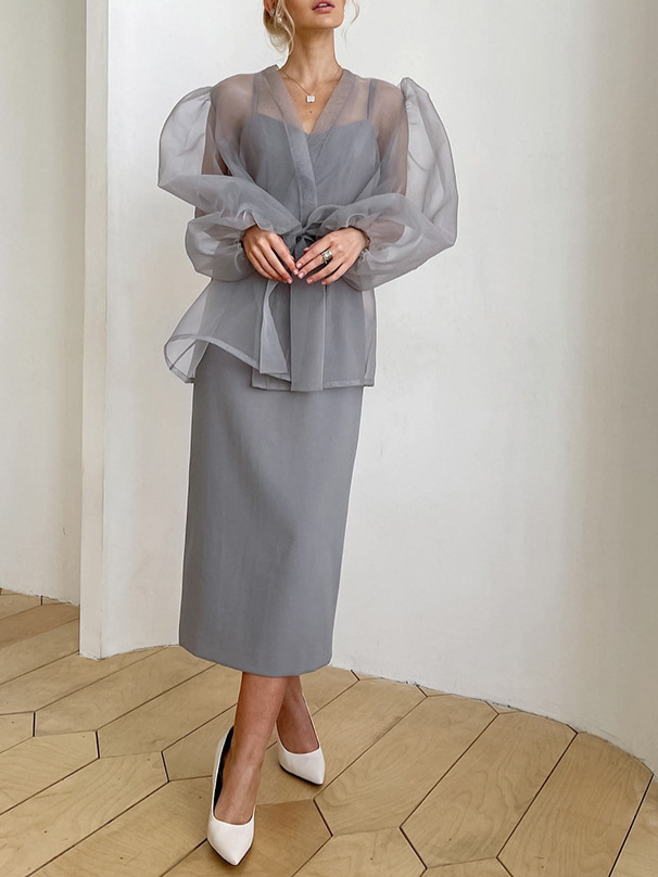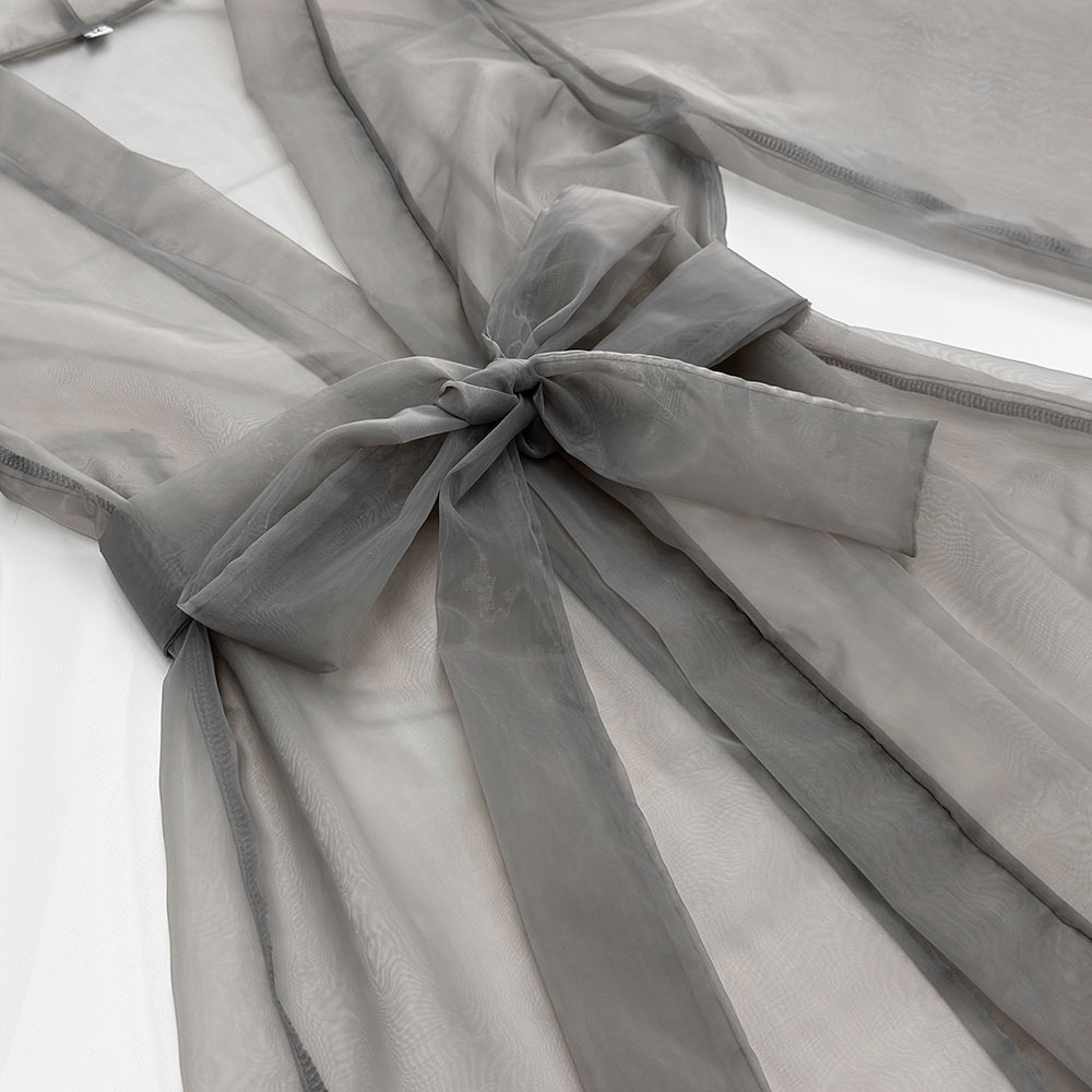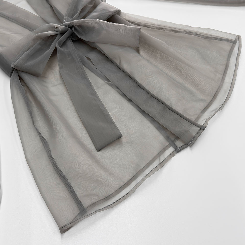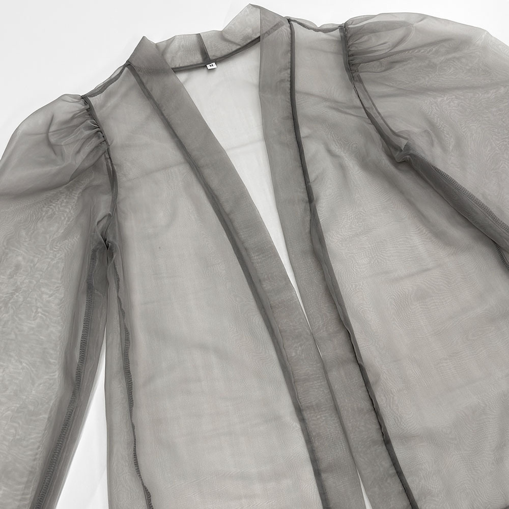 2025 봄 여름 유럽 및 미국 패션 여성복 루즈핏 시스루 섹시 블라우스 퍼프 소매 셔츠 레이스업 메쉬 탑