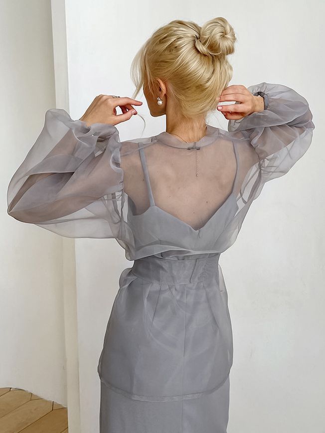 2025 봄 여름 유럽 및 미국 패션 여성복 루즈핏 시스루 섹시 블라우스 퍼프 소매 셔츠 레이스업 메쉬 탑스토어 가기