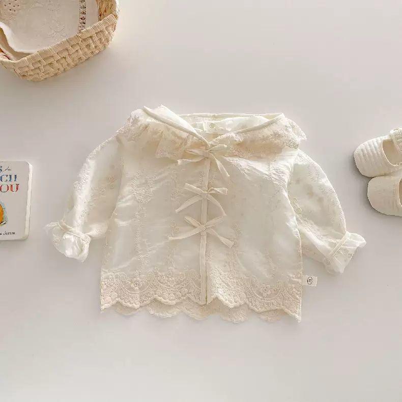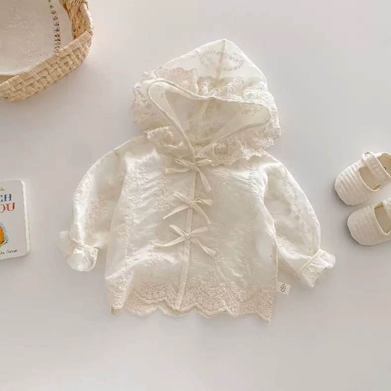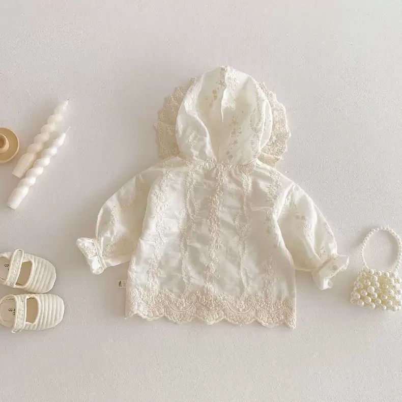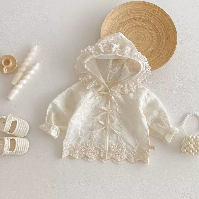 봄과 여름 아기 소녀 얇은 레이스 코트 유아 긴팔 탑 소녀 후드 공주 카디건 0052A109