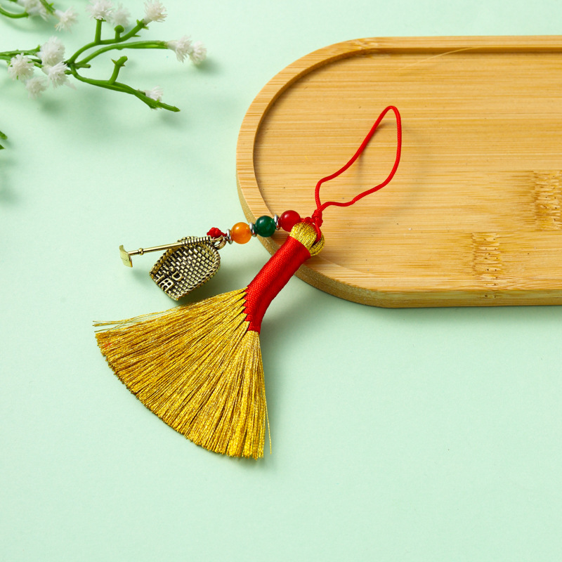 드래곤 보트 축제 금 빗자루 키 체인 아기 침대 옆 작은 빗자루 축복 빗자루 집들이 펜던트 손으로 짠 금 빗자루 도매