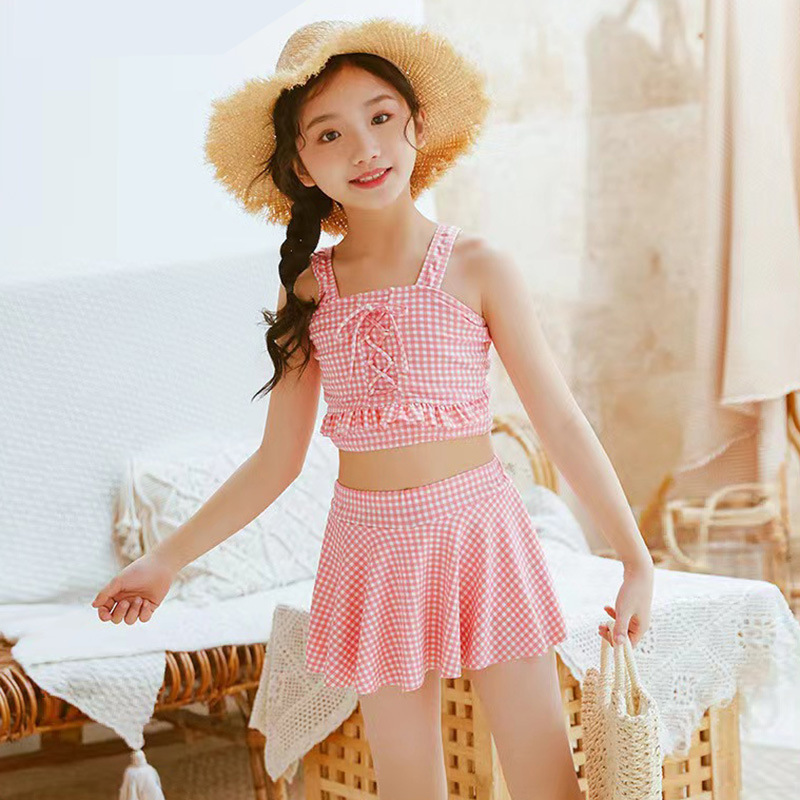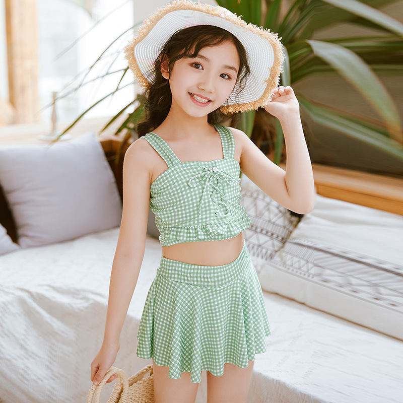 여자 스플릿 수영복 스커트 격자 무늬 3-12 세 숲 요정 스타일 달콤하고 귀여운 공주 수영복 도매스토어 가기