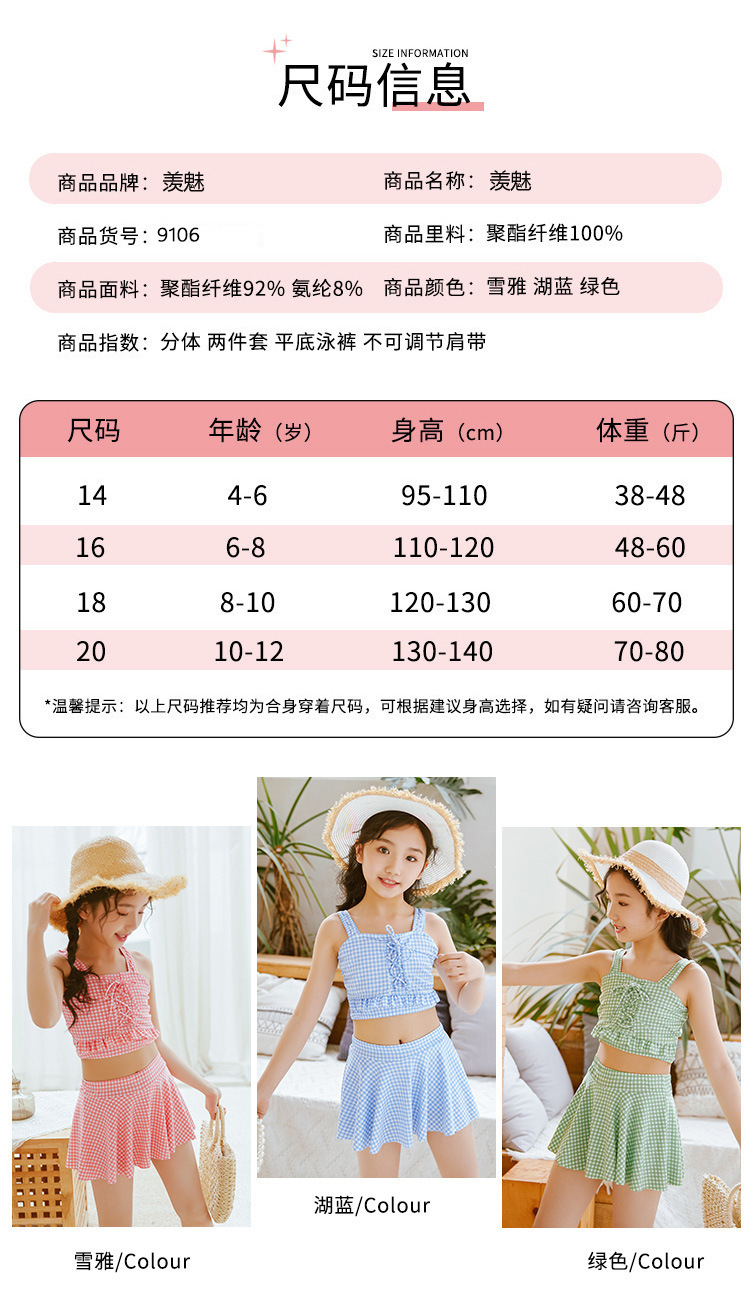 여자 스플릿 수영복 스커트 격자 무늬 3-12 세 숲 요정 스타일 달콤하고 귀여운 공주 수영복 도매