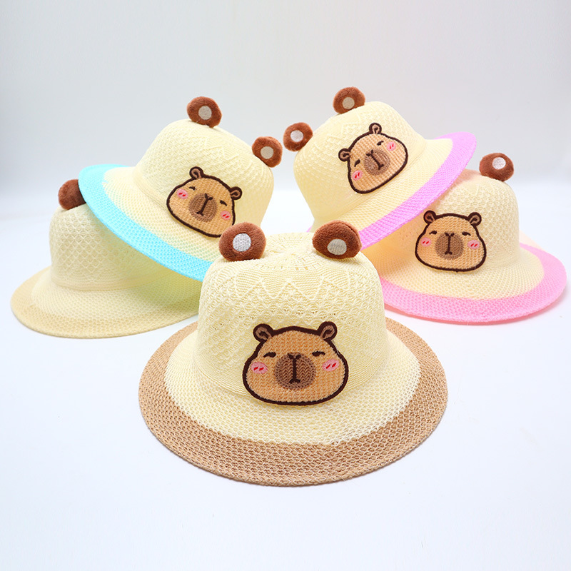 Kapibala 밀짚 모자 큰 챙 소녀 여름 야외 여행 태양 통기성 모자 휴양지 어린이 태양 모자 도매