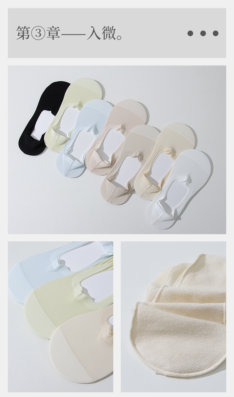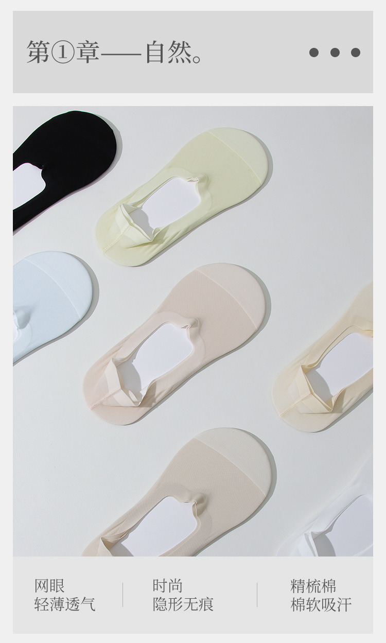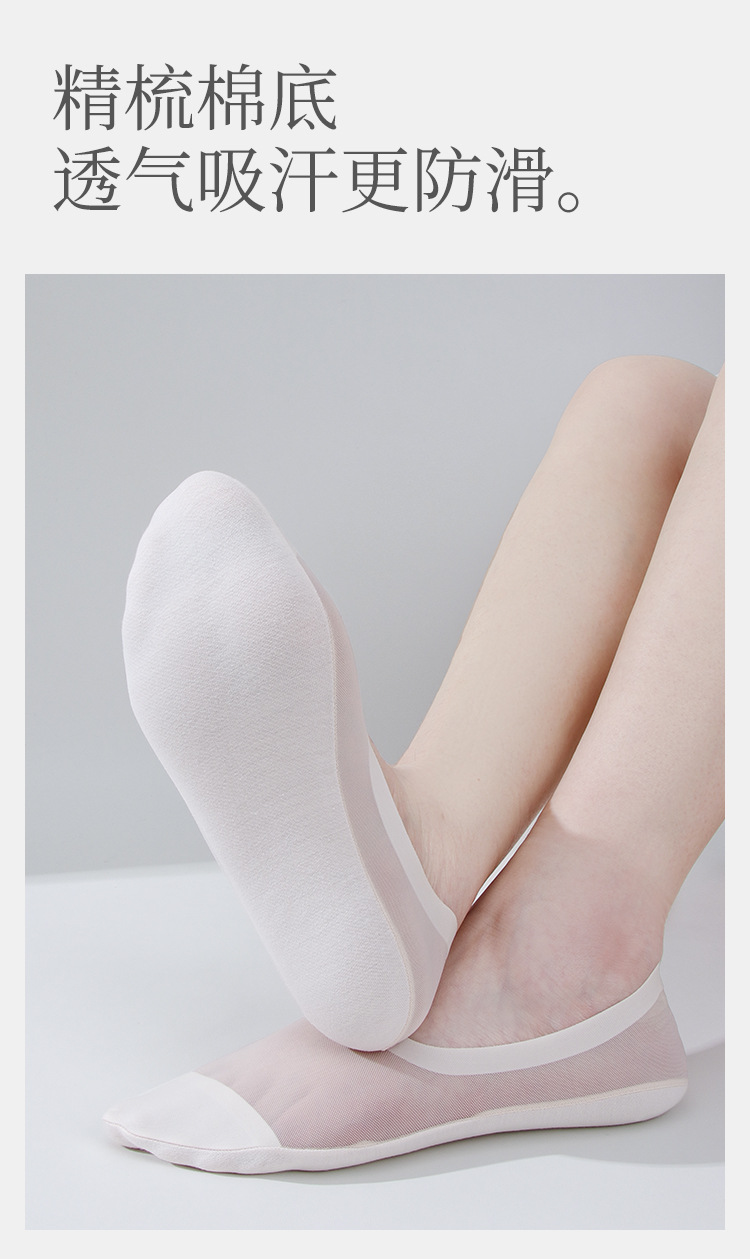 여성용 보이지 않는 보트 양말, 면 바닥, 얼음 실크 메쉬, 통기성, 초박형, 여름용, 떨어지지 않는 양말, 얕은 입구, 실리콘 미끄럼 방지 짧은 양말