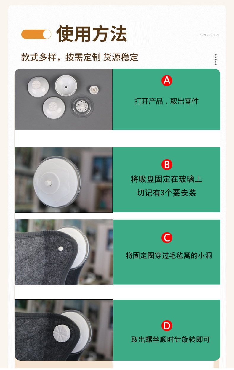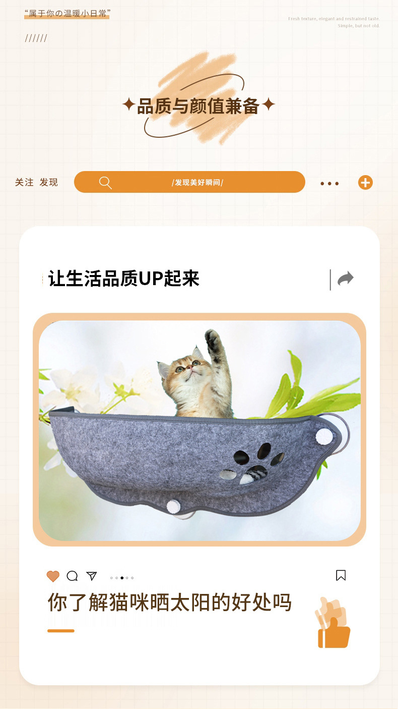 고양이 흡입 애완 동물 초승달 둥지 이동식 및 세척 가능한 사계절 유니버설 멀티 컬러 발코니 창 펠트 해먹 고양이 둥지스토어 가기