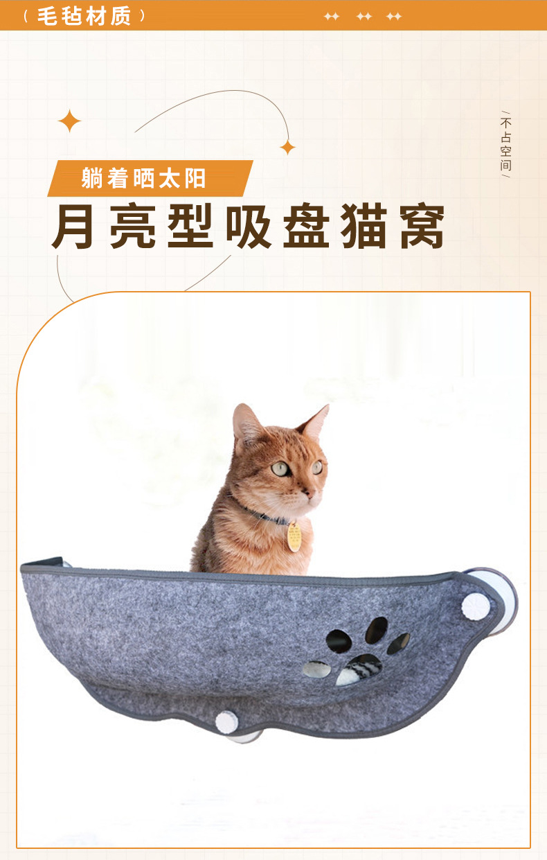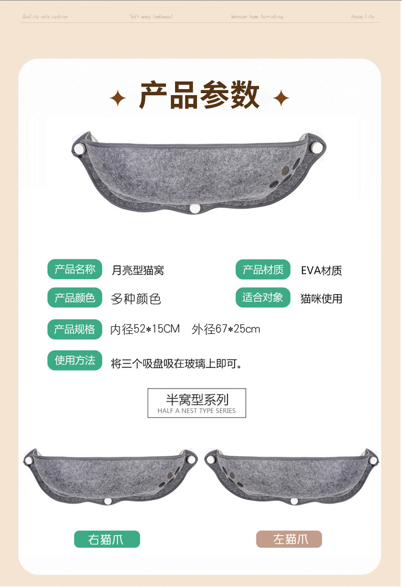 고양이 흡입 애완 동물 초승달 둥지 이동식 및 세척 가능한 사계절 유니버설 멀티 컬러 발코니 창 펠트 해먹 고양이 둥지
