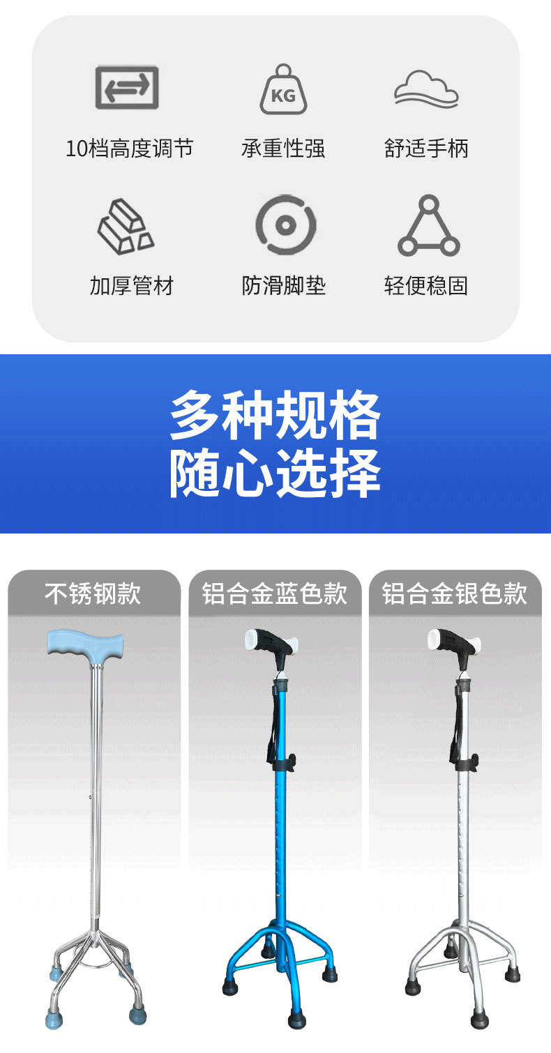 노인 목발 4 구석 워커 워킹 스틱 하이킹 스틱을위한 노인을위한 미끄럼 방지 접이식 목발 4 발 목발