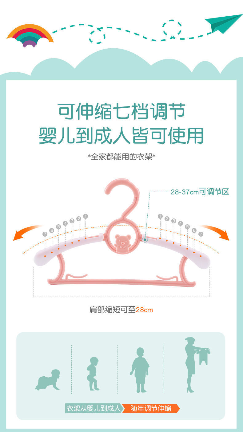 可伸缩叠挂儿童衣架多功能婴儿成人新生儿宝宝晾衣撑加厚防滑防风스토어 가기