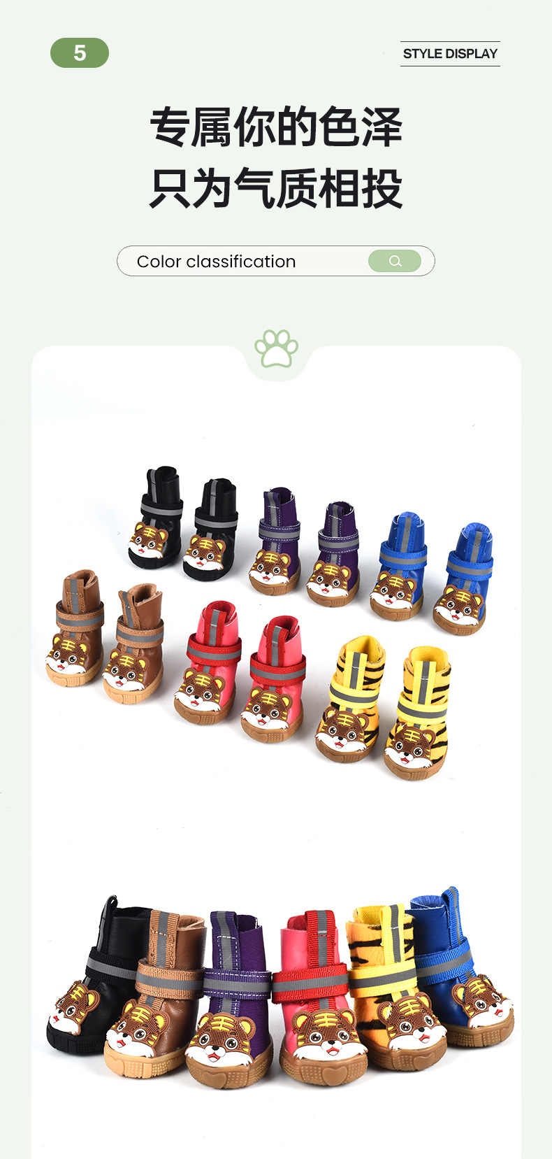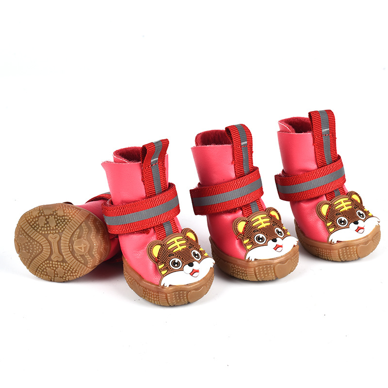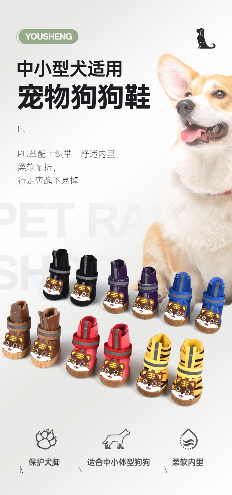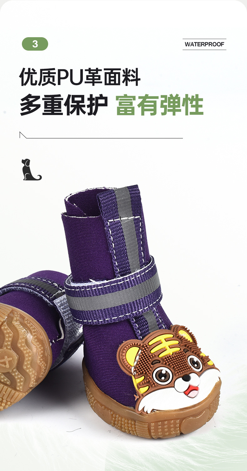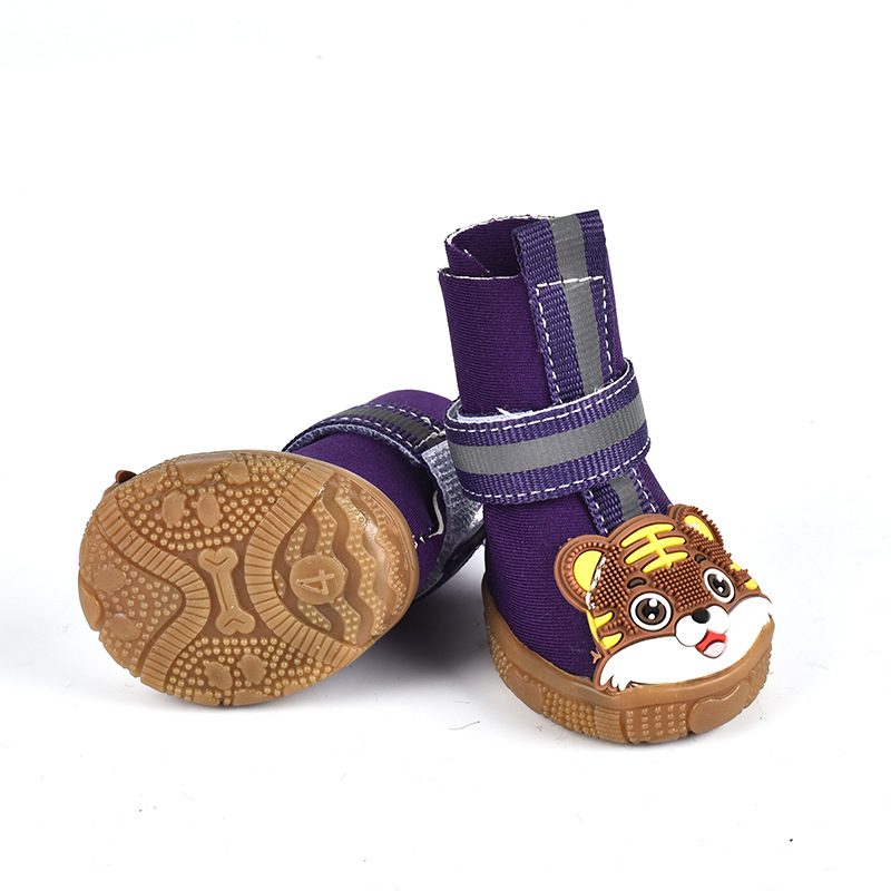 새로운 스타일의 개 야외 미끄럼 방지 및 내마모성 만화 방수 애완 동물 신발 비오는 날 반사 테디 개 신발스토어 가기