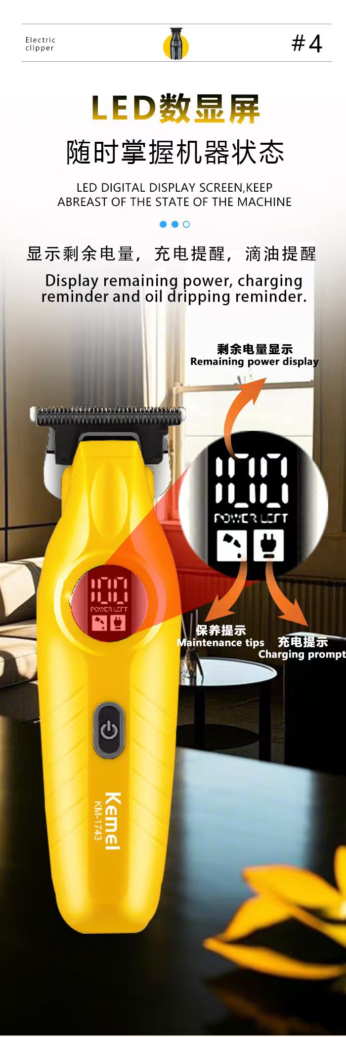 KM-1743 미용실 전문 전기 클리퍼 다기능 USB 베이스 전기 머리 깎기 고출력 면도기스토어 가기