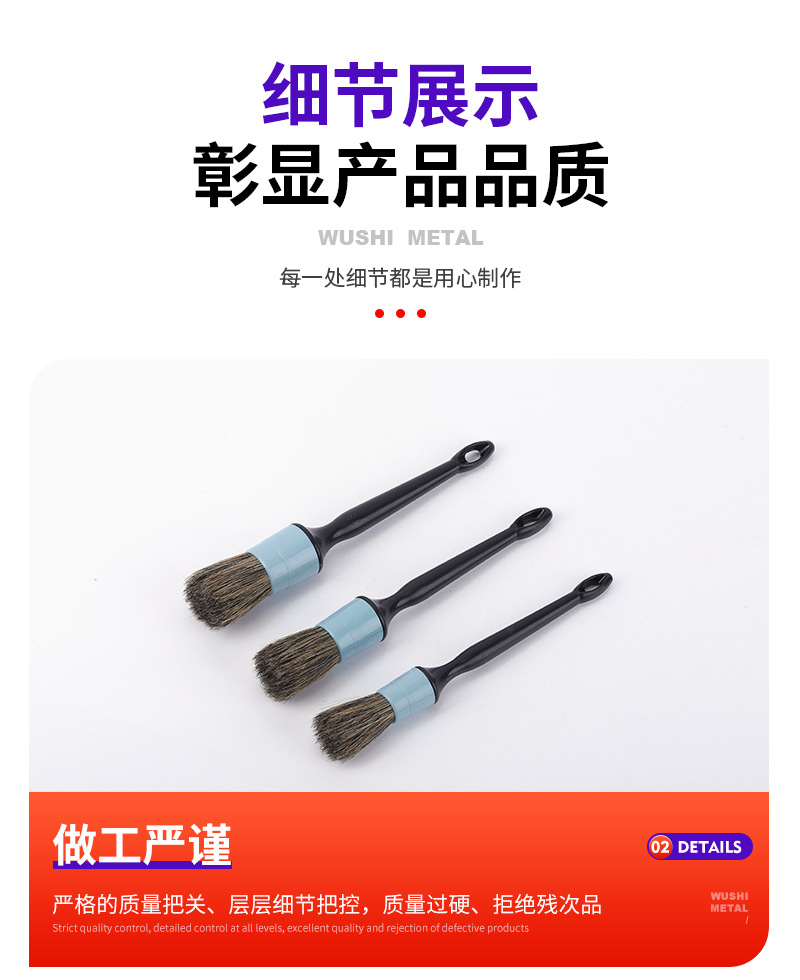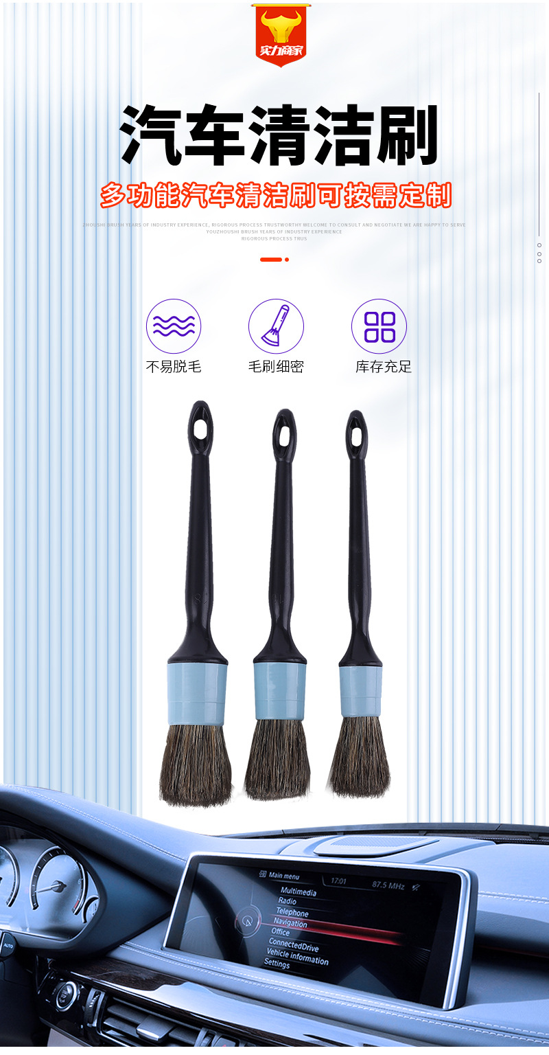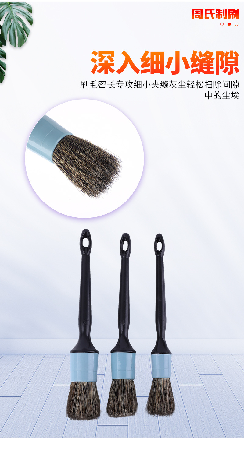 순수 멧돼지 강모 3피스 세트 자동차 청소 브러시 자동차 세차 브러시 에어컨 통풍구 인테리어 자동차 간격 부드러운 강모 브러시
