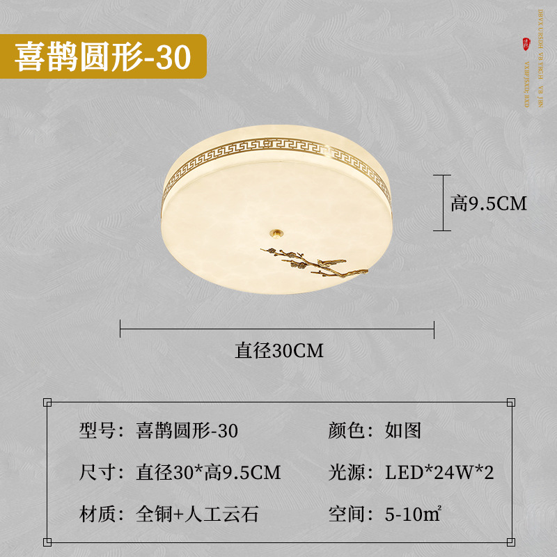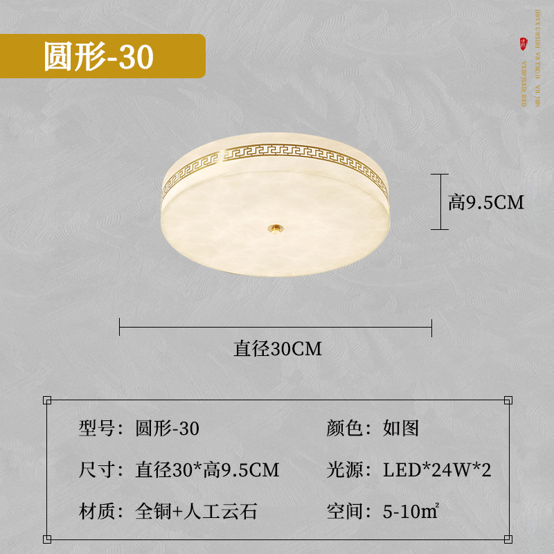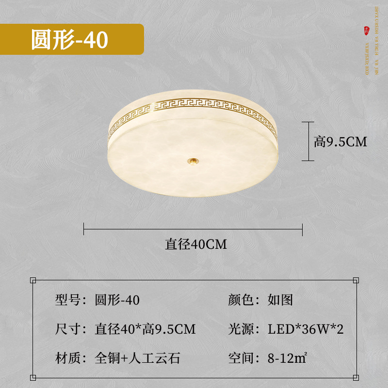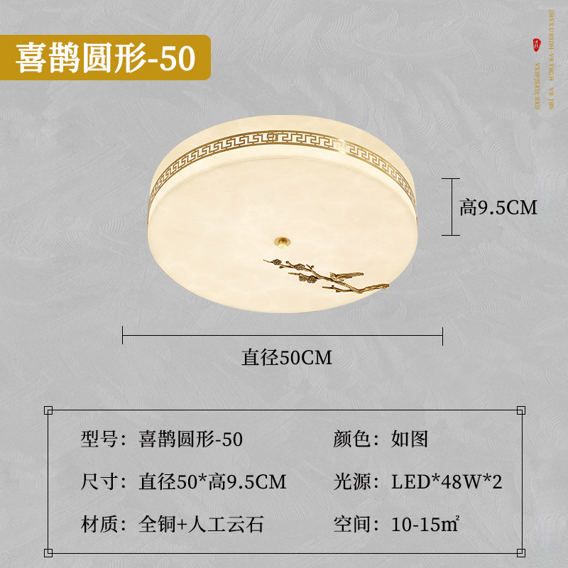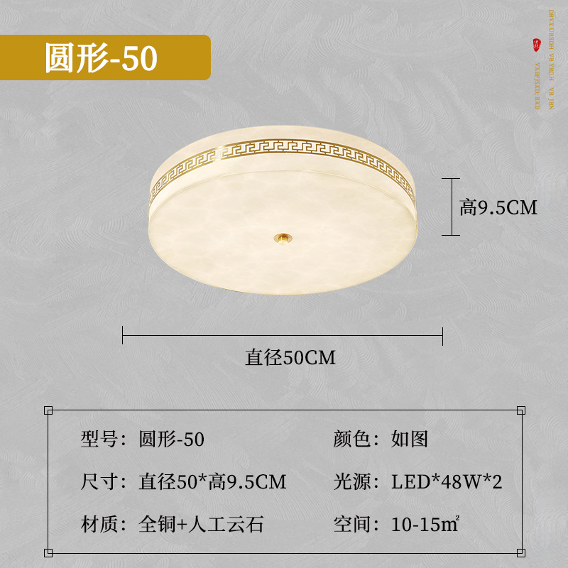 새로운 중국 스타일의 모든 구리 거실 램프 모조 대리석 천장 램프 간단한 복고풍 중국 스타일의 연구 램프 침실 조명