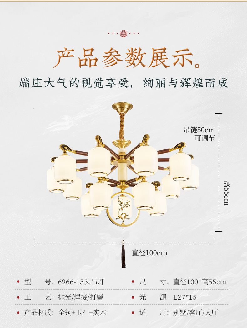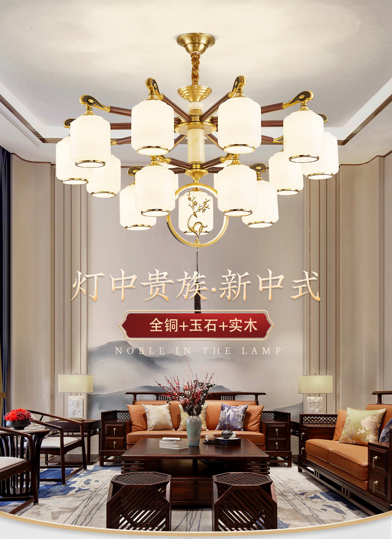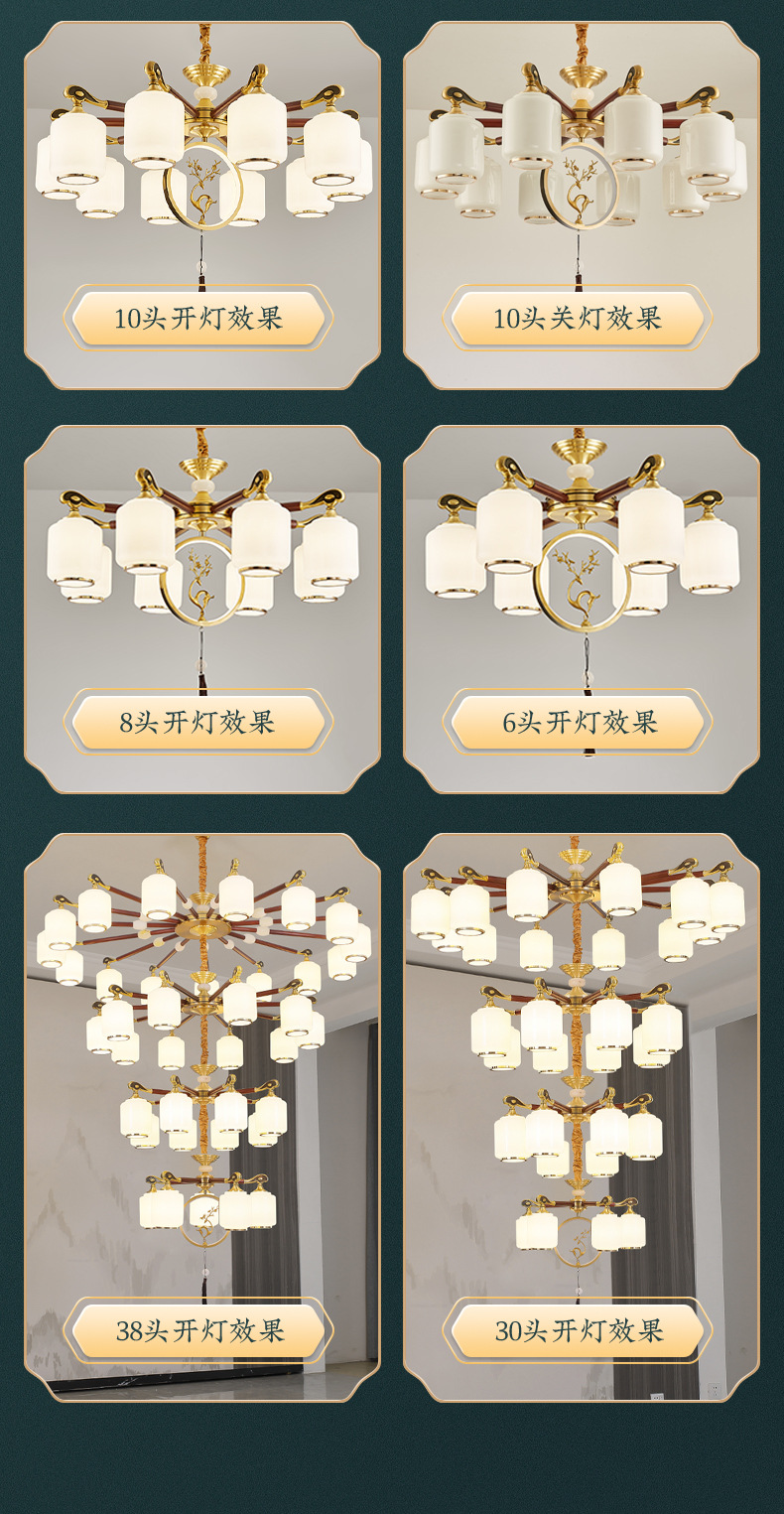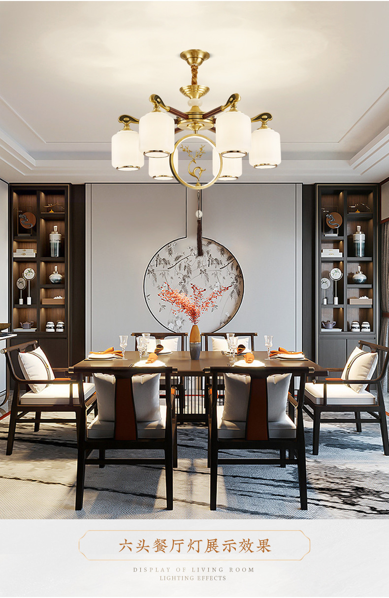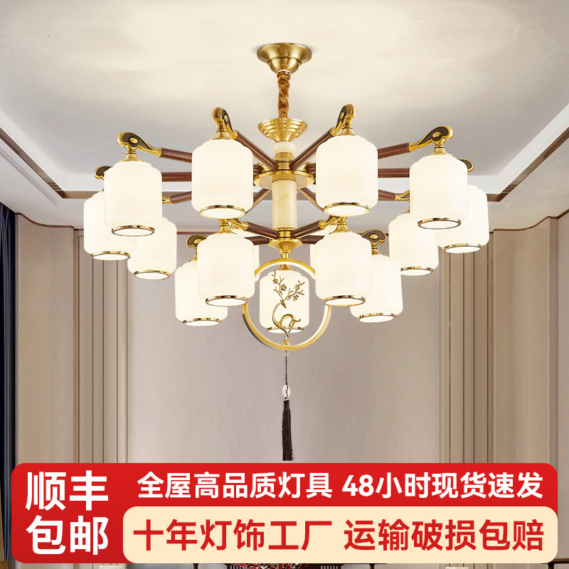 새로운 중국 스타일 샹들리에 거실 선 풀루 중국 스타일 솔리드 우드 찻집 레스토랑 연구 홈 램프 용 구리 램프