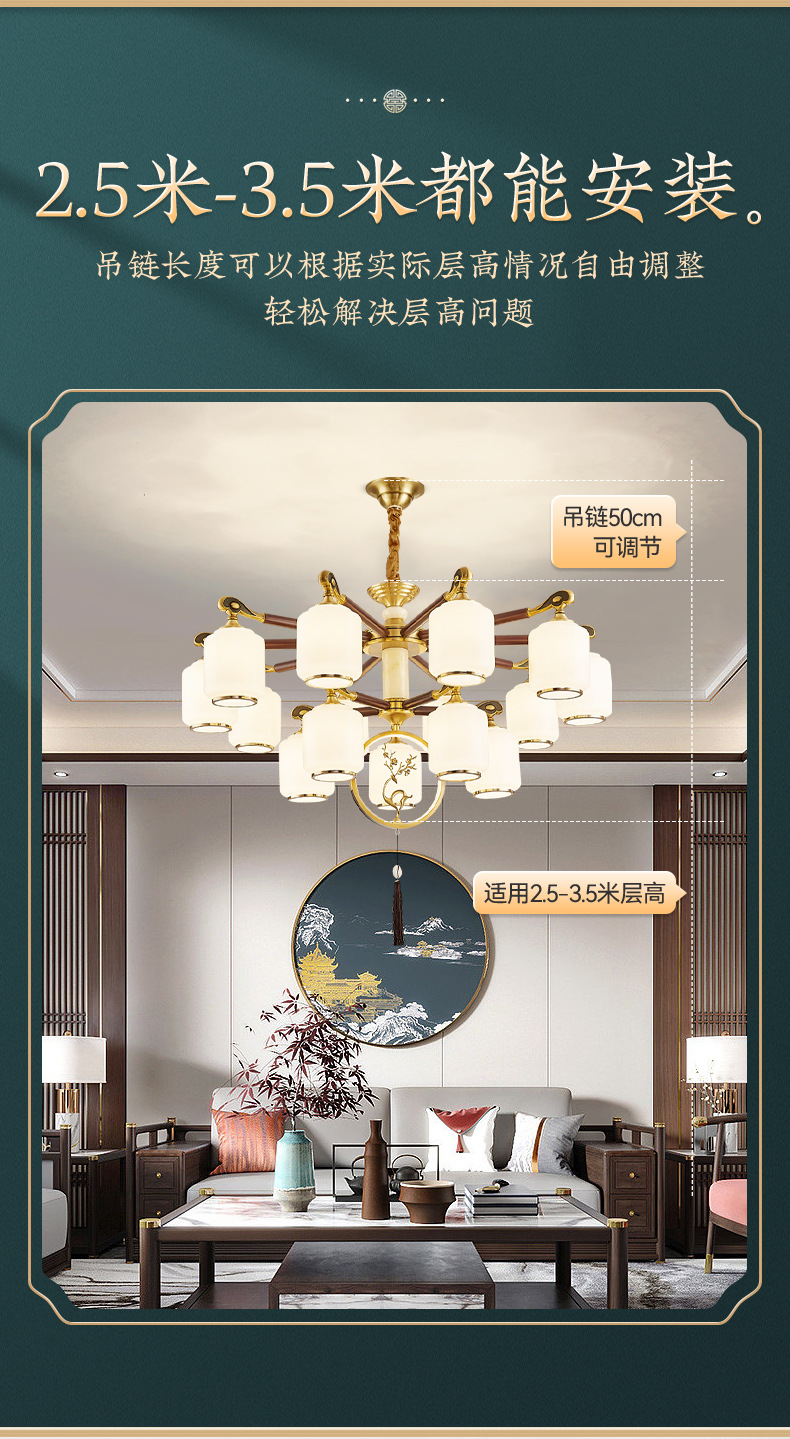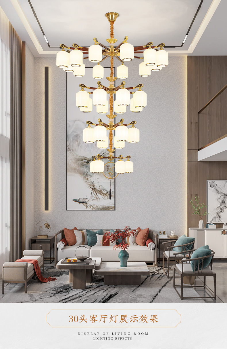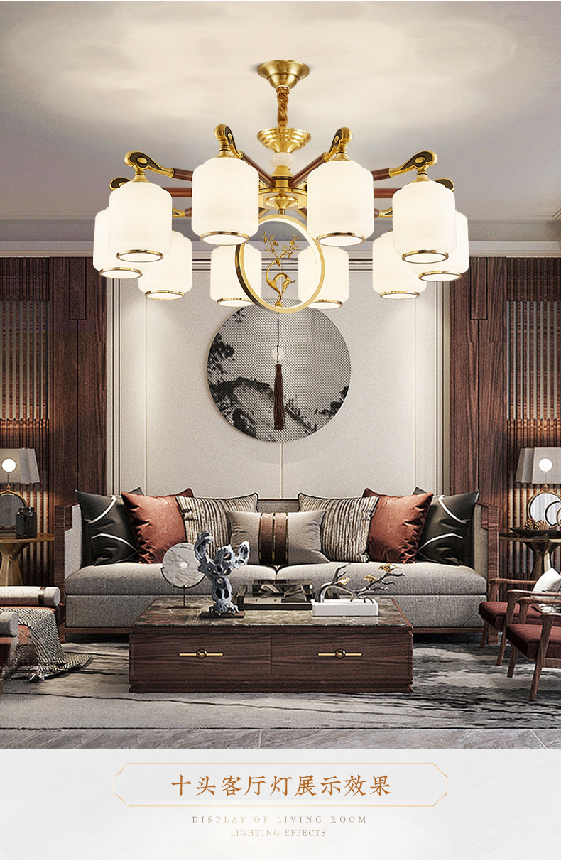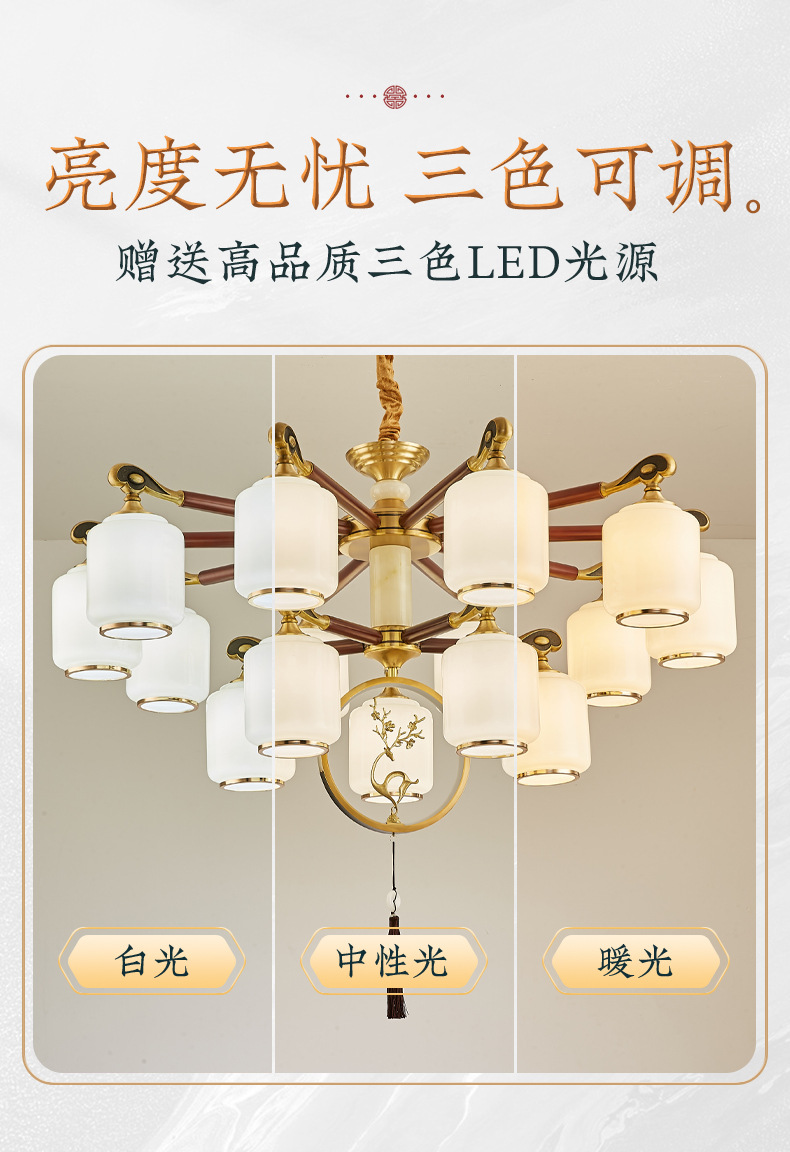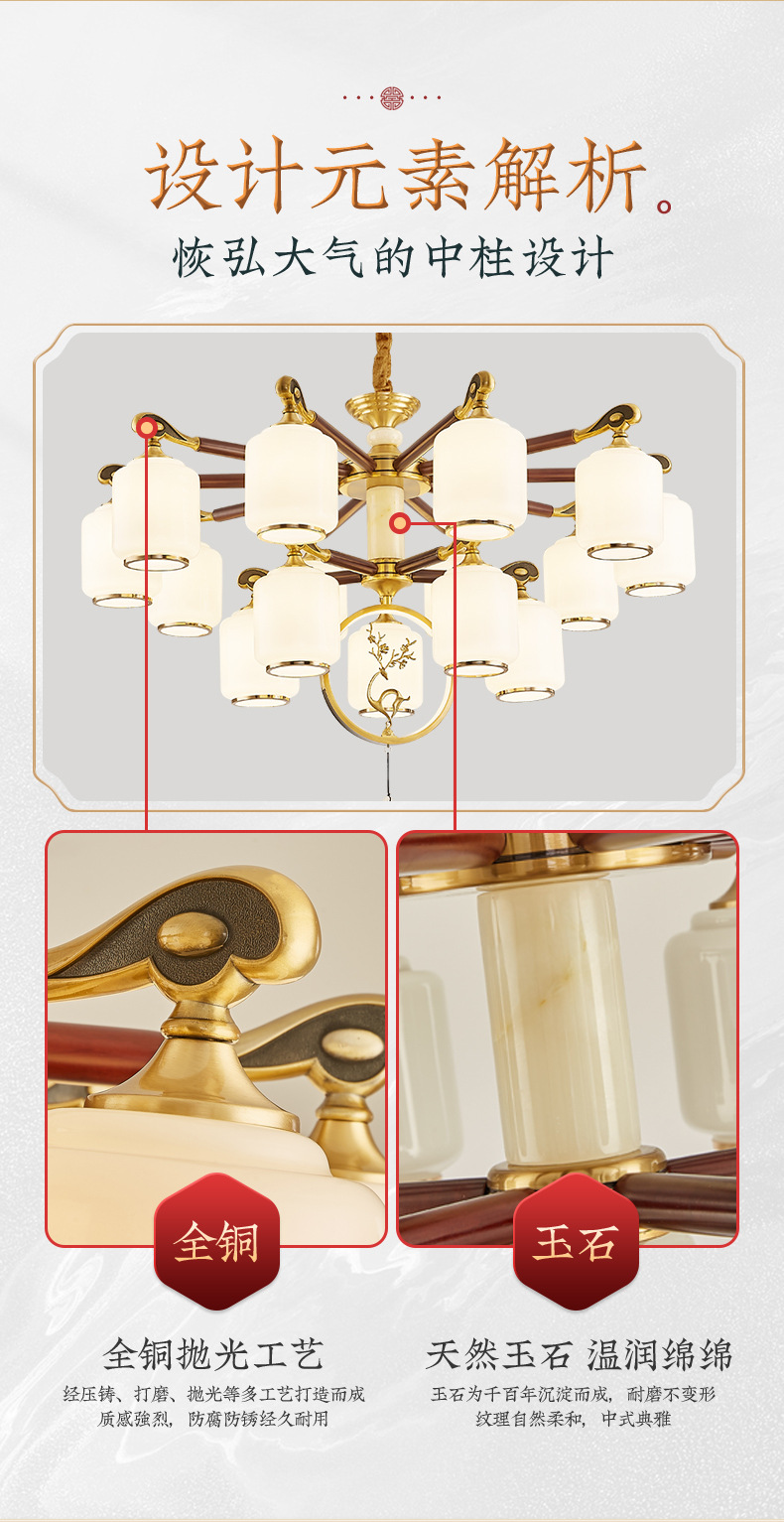 새로운 중국 스타일 샹들리에 거실 선 풀루 중국 스타일 솔리드 우드 찻집 레스토랑 연구 홈 램프 용 구리 램프