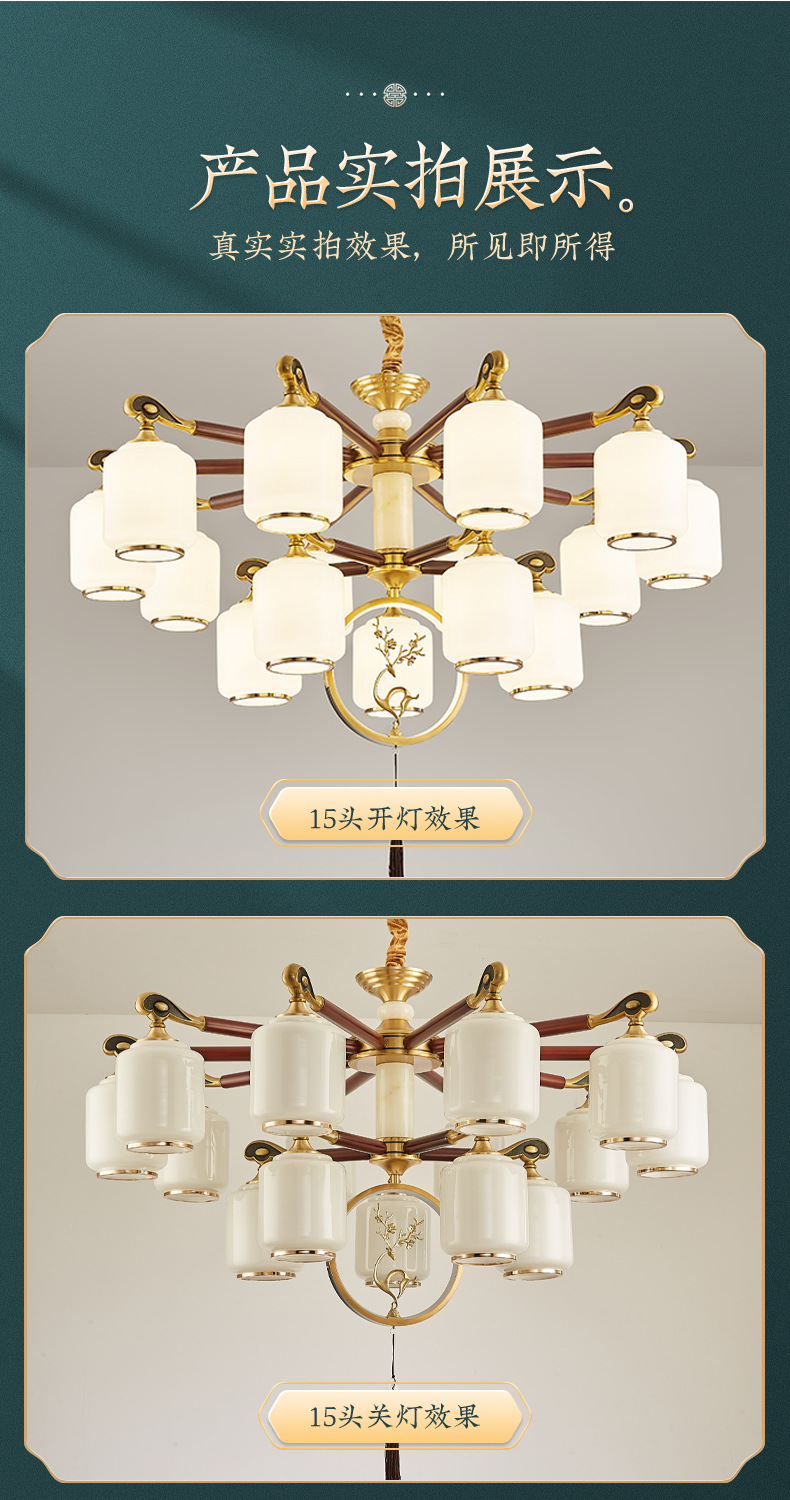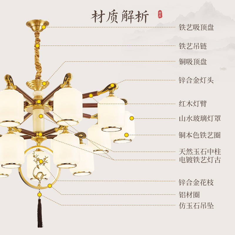 새로운 중국 스타일 샹들리에 거실 선 풀루 중국 스타일 솔리드 우드 찻집 레스토랑 연구 홈 램프 용 구리 램프스토어 가기