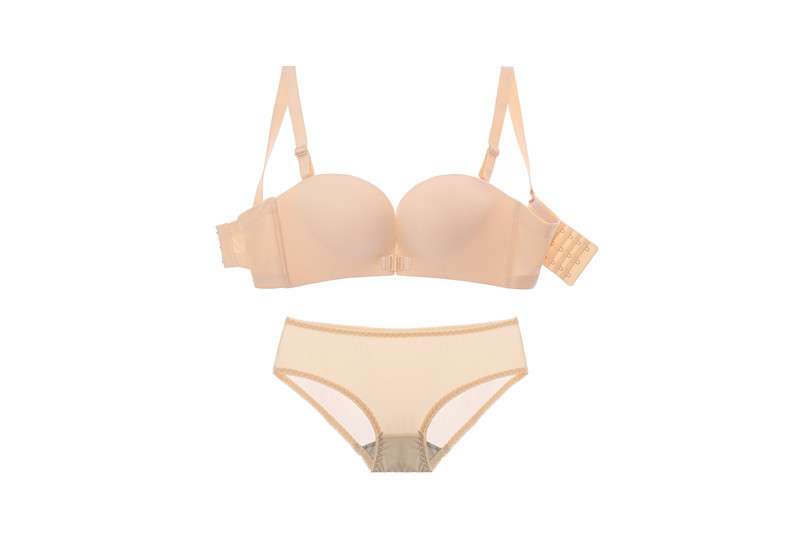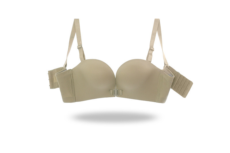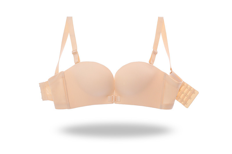 작은 가슴을 가진 여성을 위한 오리지널 고품질 프론트 버튼 끈이 없는 속옷, 두꺼운 와이어 프리 미끄럼 방지 브라, 섹시한 푸시업 브라