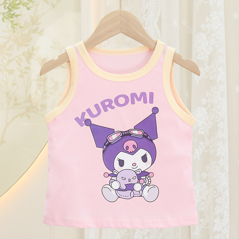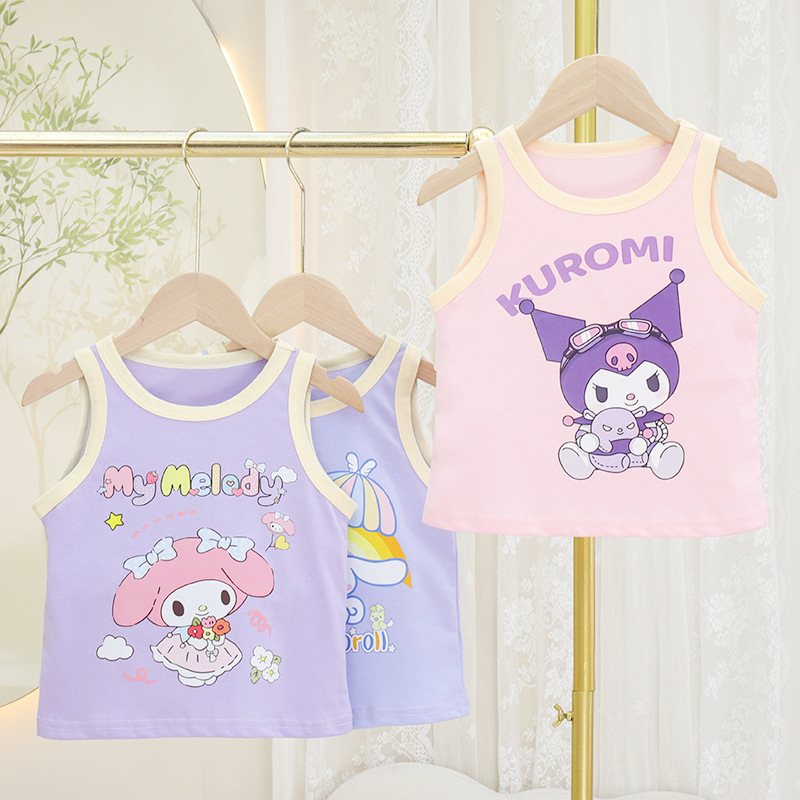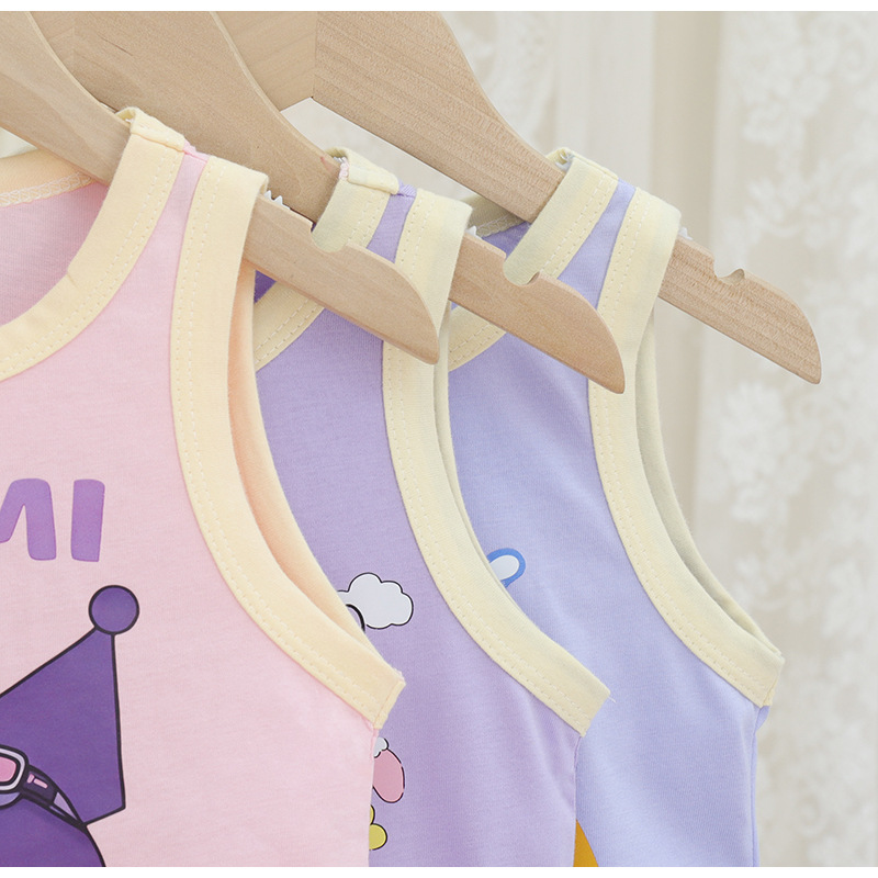 2025 여름 소녀 아기 착용 유행 사이버 축하 슬링 톱 귀여운 어린이 조끼 세트 얇은 서양식