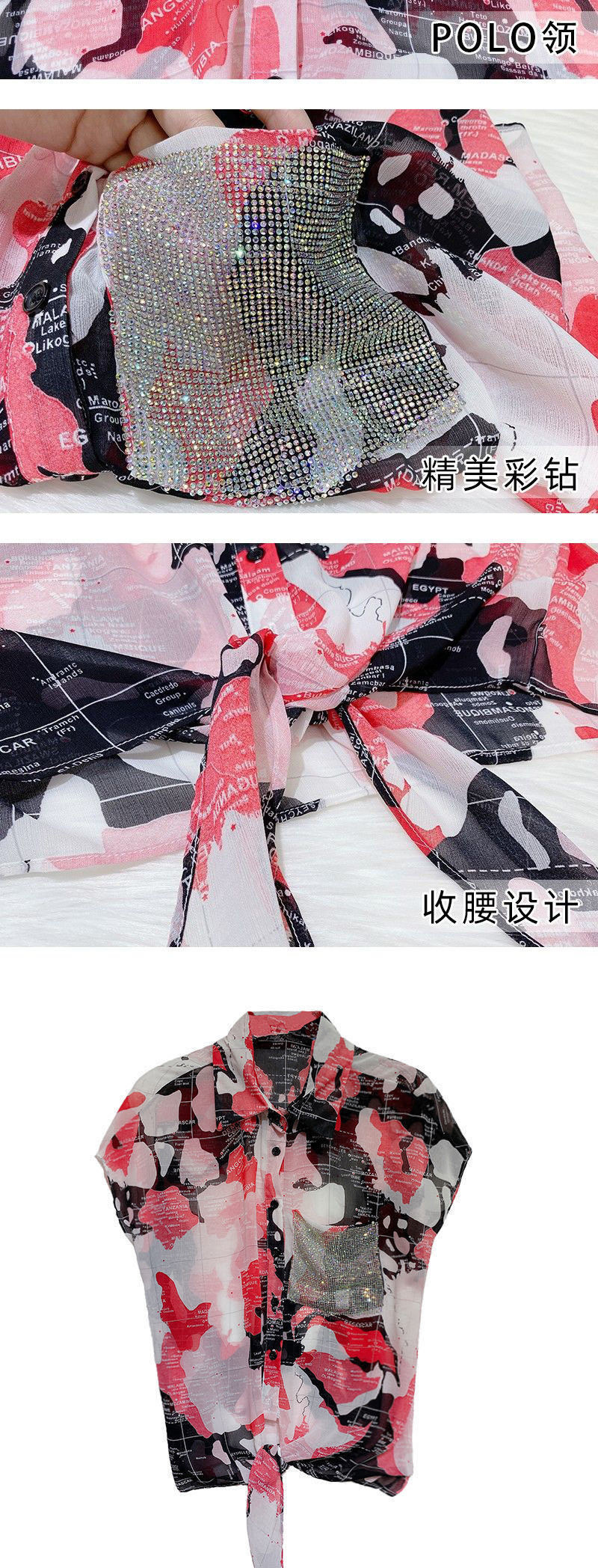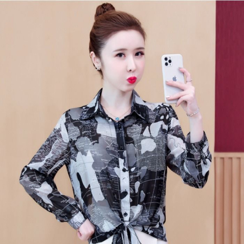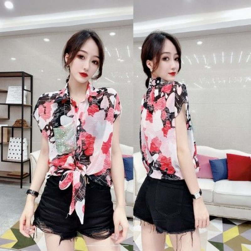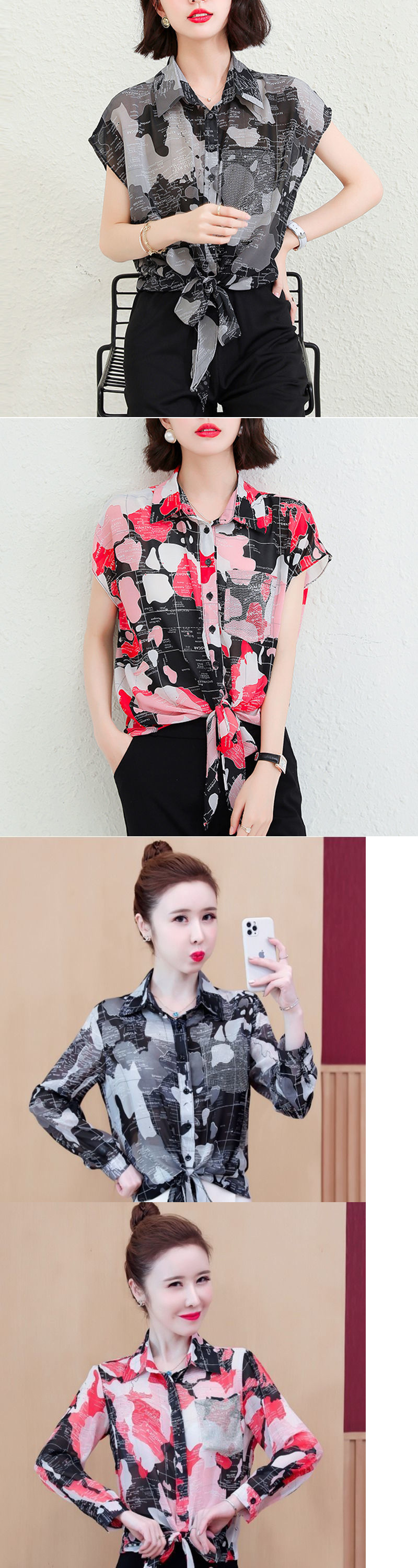 쉬폰 셔츠 여성의 2025 여름 셔츠 새로운 패션 매듭 인쇄 짧은 소매 꽃 서양식 우아한 플러스 사이즈 탑스토어 가기