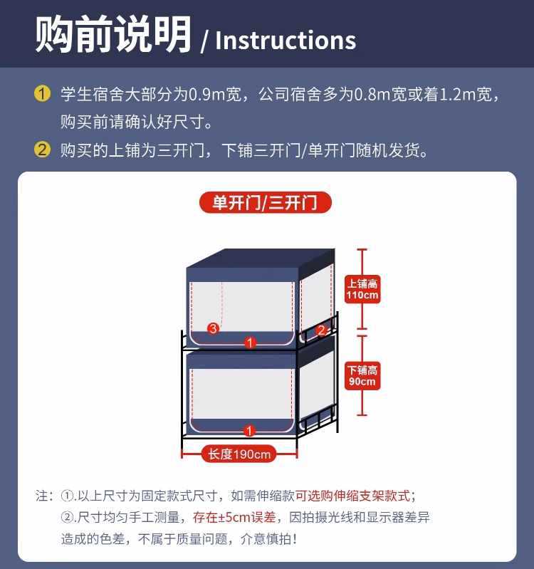 2층 침대용 범용 모델, 단일 도어 및 3 도어 모기장 2024 2층 침대 대학생 창 커튼 기숙사 침대 커튼
