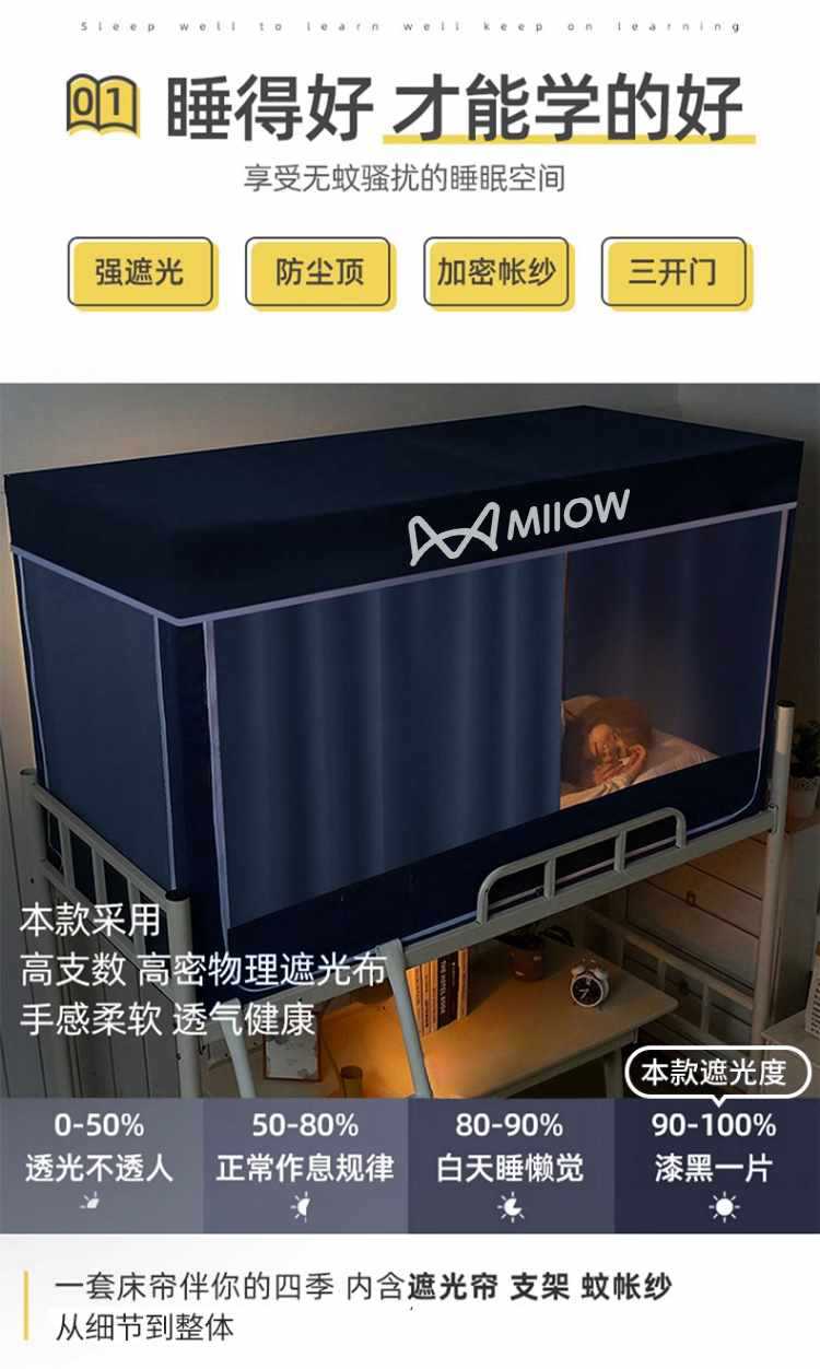 2층 침대용 범용 모델, 단일 도어 및 3 도어 모기장 2024 2층 침대 대학생 창 커튼 기숙사 침대 커튼스토어 가기