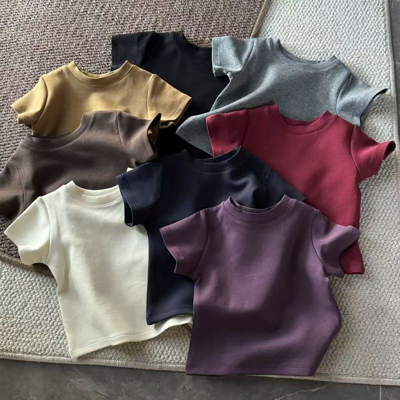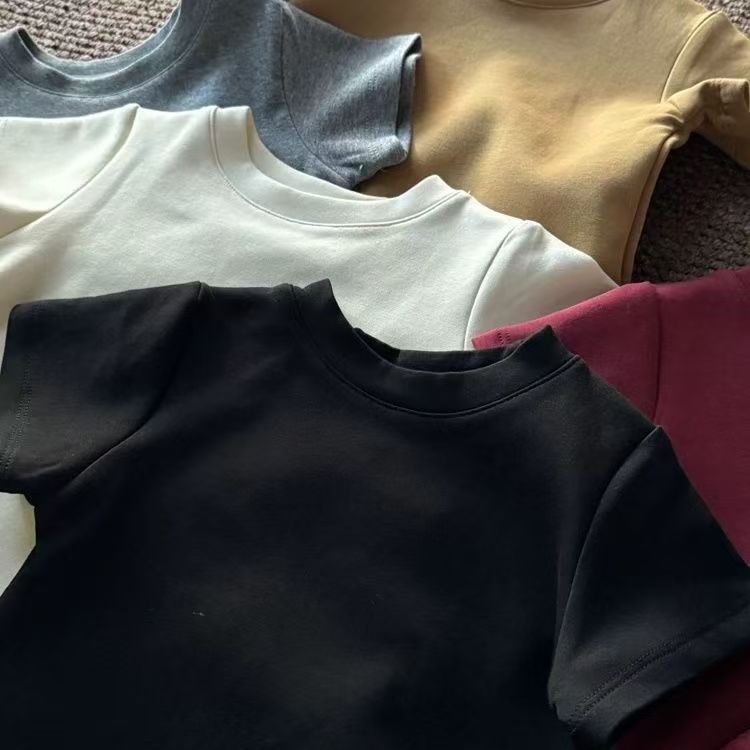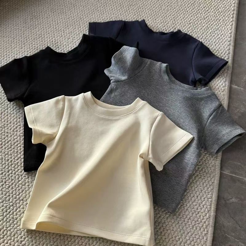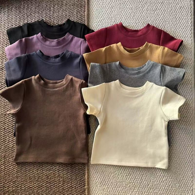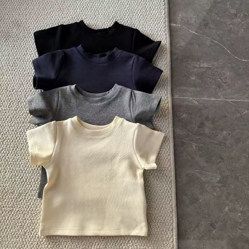 소년 여름 캔디 컬러 순수 코튼 반팔 티셔츠 2025 어린이 베이비 다목적 솔리드 컬러 클래스 유니폼 반팔 탑
