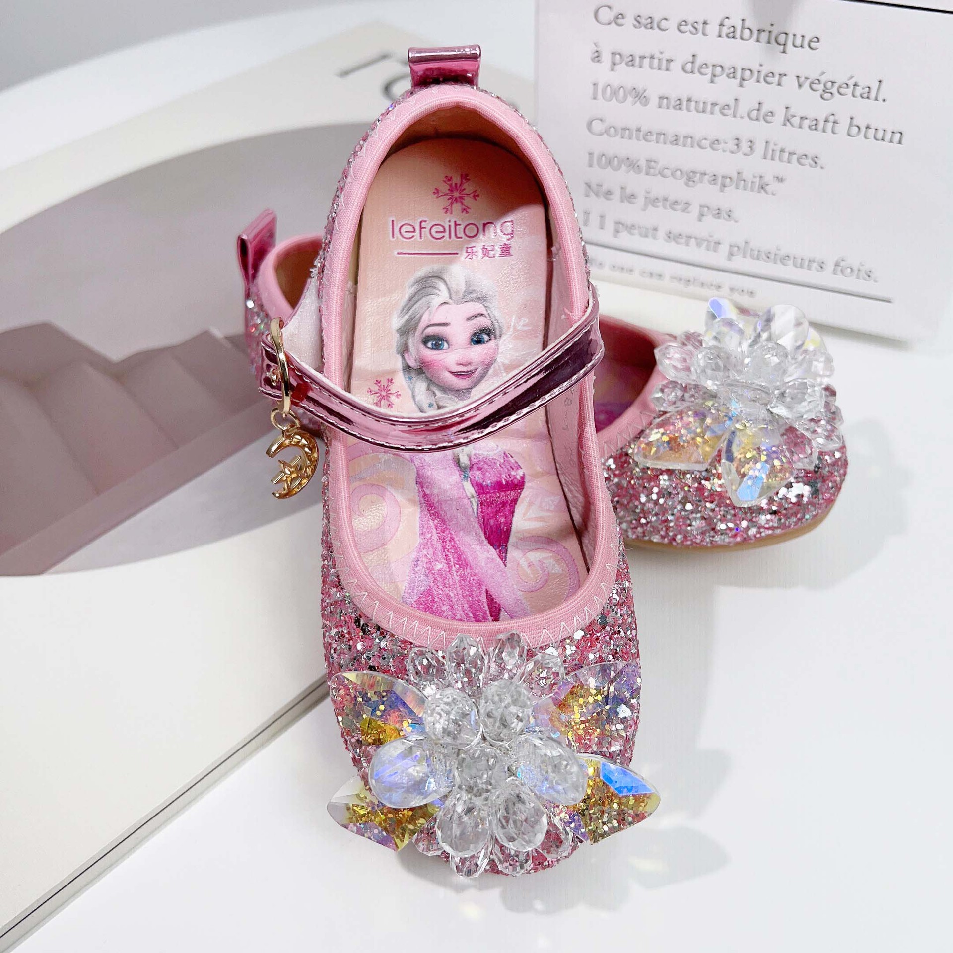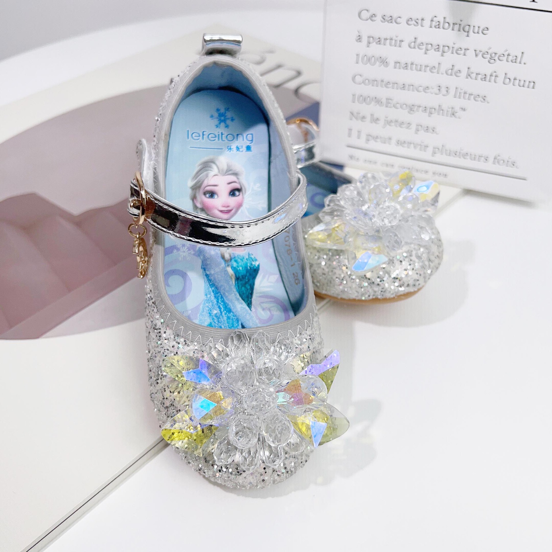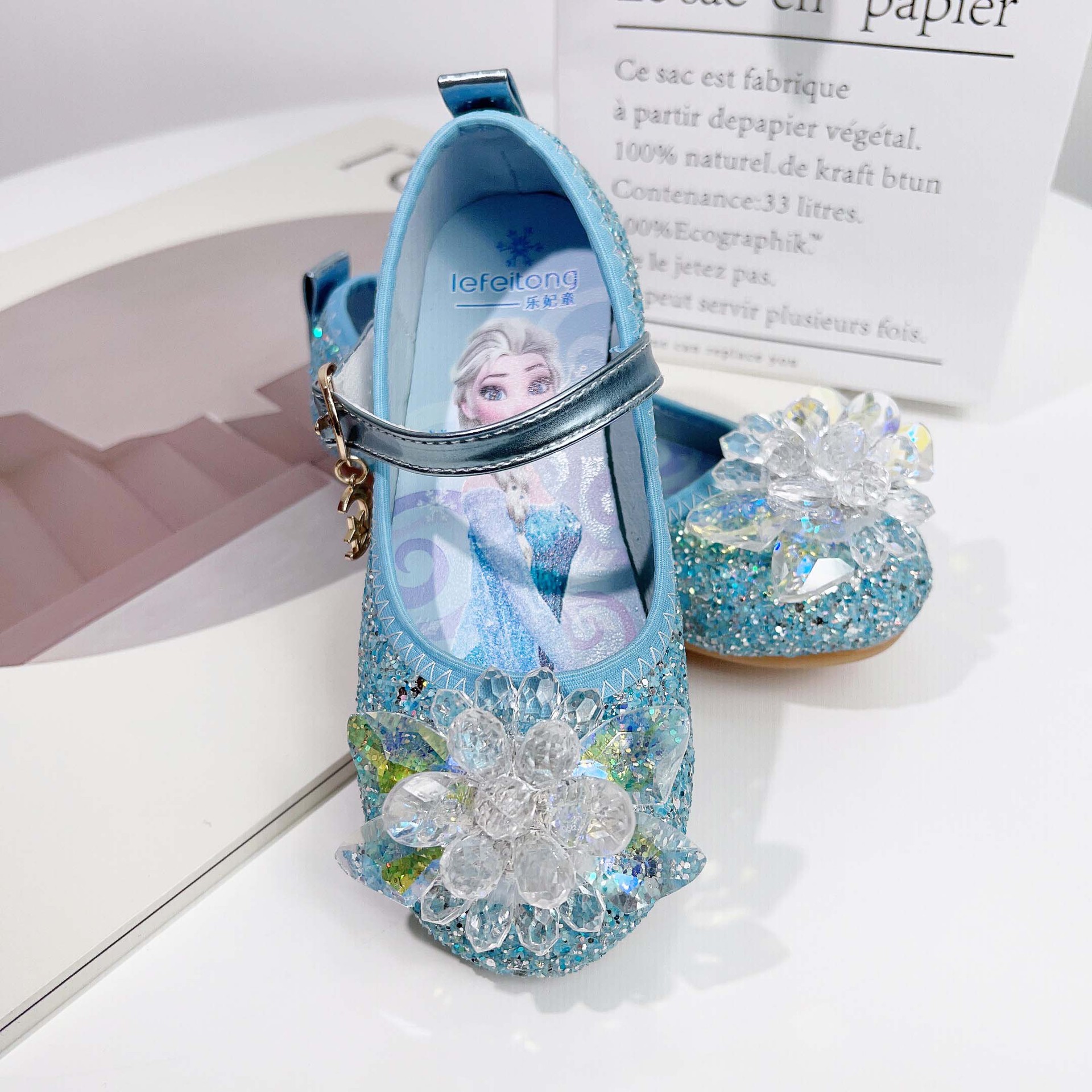 여자 공주 신발 블루 엘사 크리스탈 신발 봄과 가을 새로운 중소 어린이 플랫 신발 아기 소녀 부드러운 밑창 신발스토어 가기