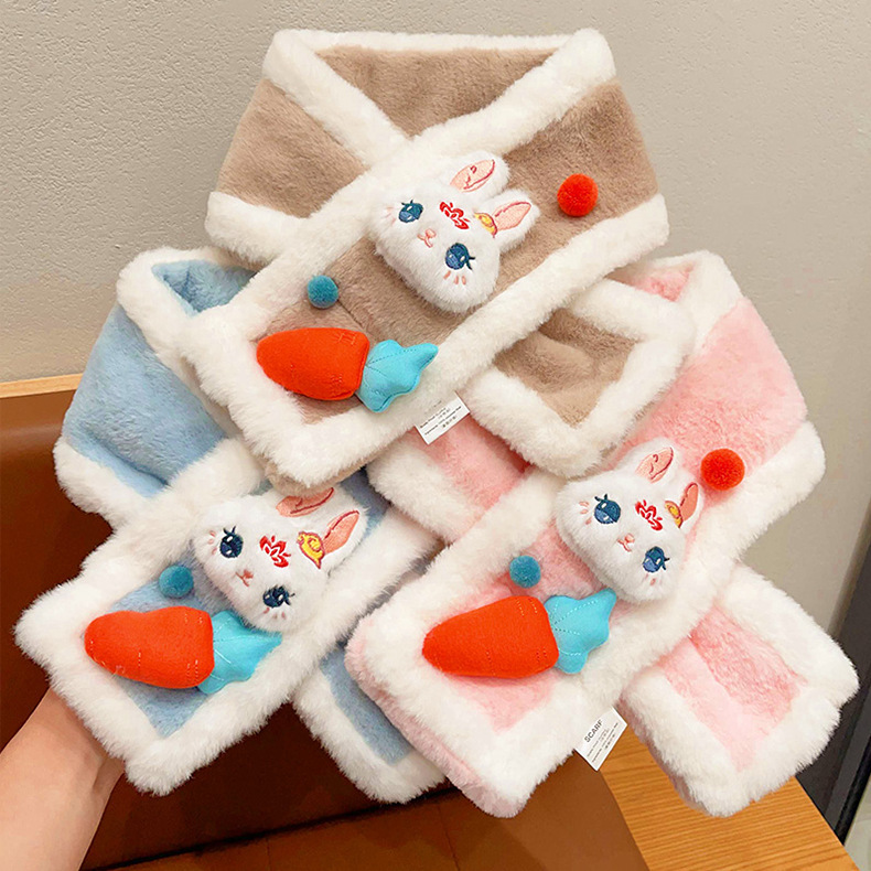 겨울에는 벨벳과 두꺼운 소녀를 위한 어린이 만화 스카프, 소년을 위한 귀여운 토끼 스카프, 플러시 따뜻하고 방풍 목 커버