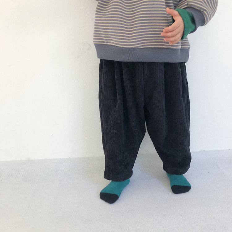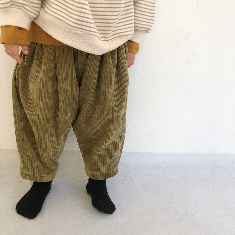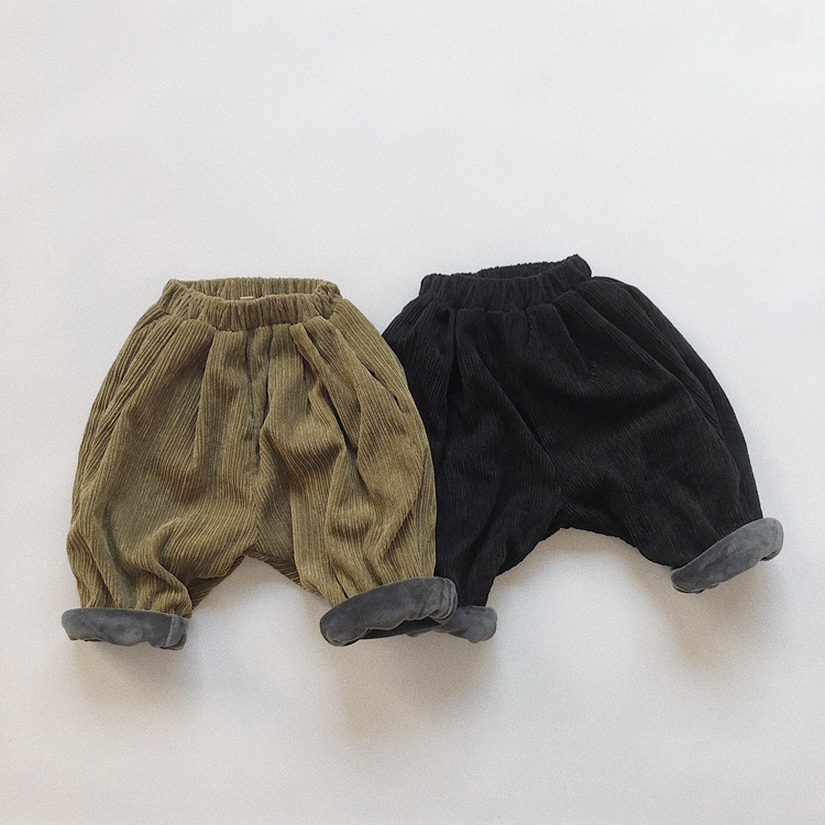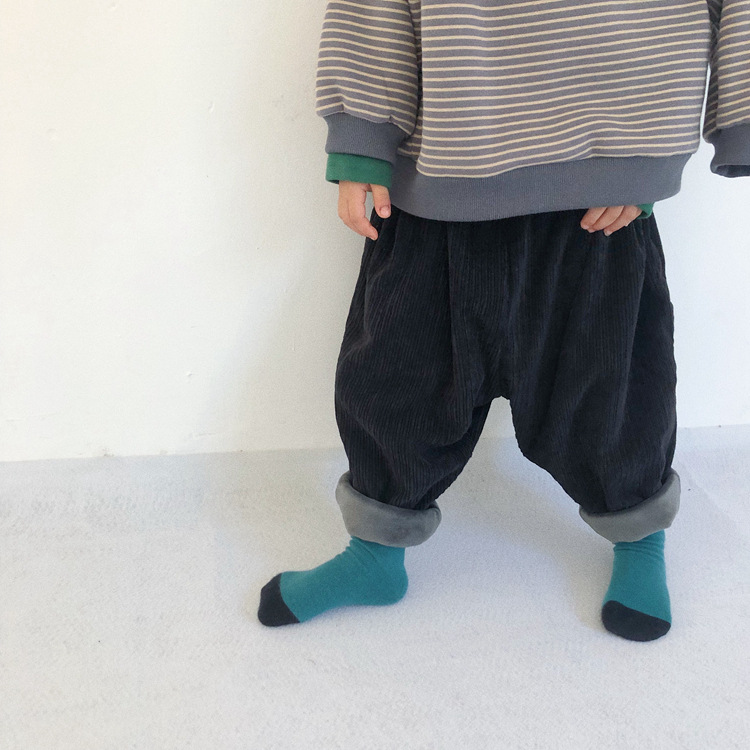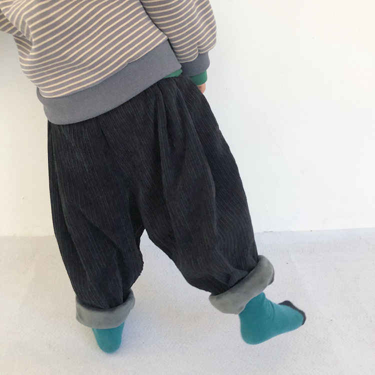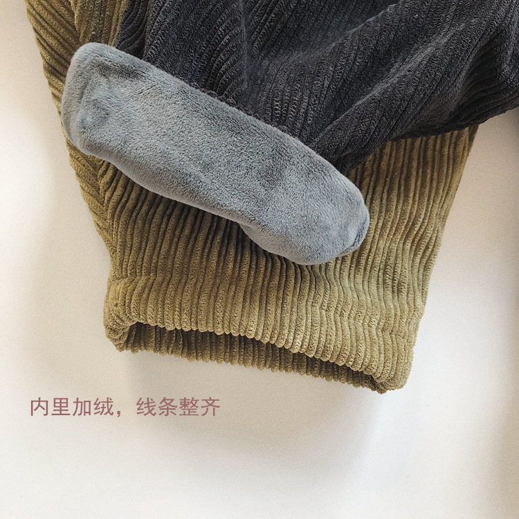 질감 질감 한국 아동복 가을 및 겨울 어린이 코듀로이 기모 당근 바지 소년 소녀 따뜻한 바지