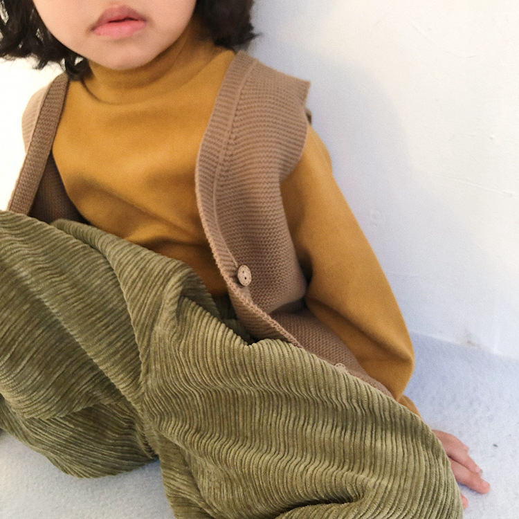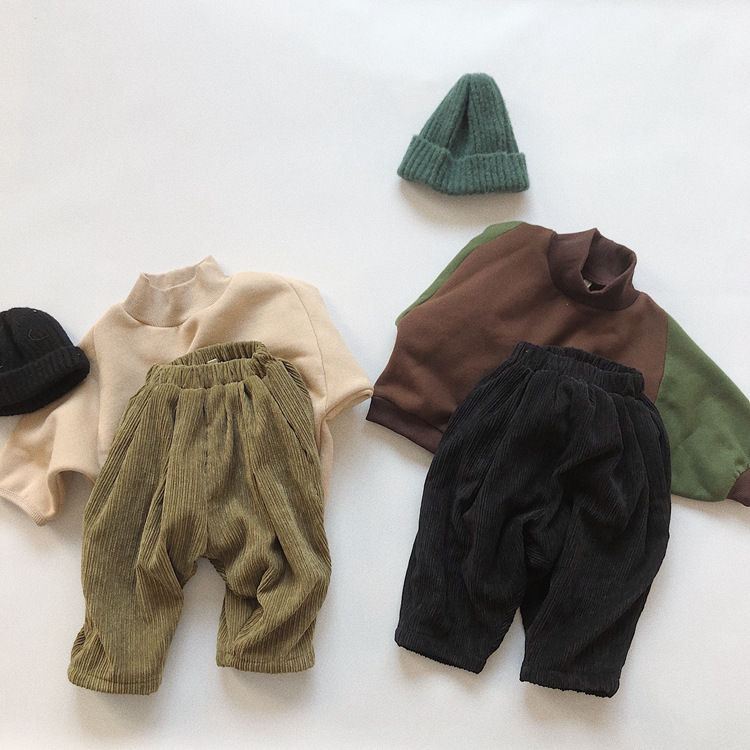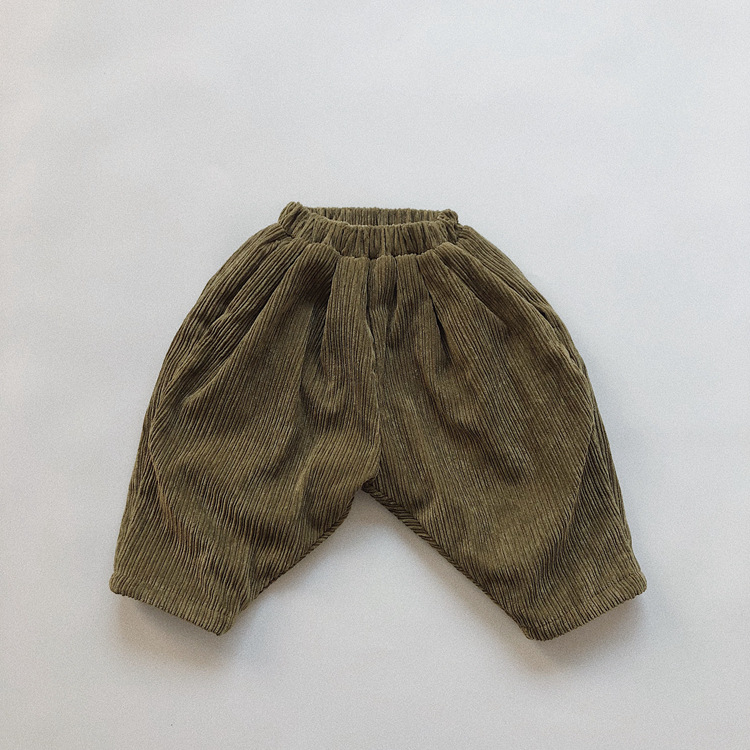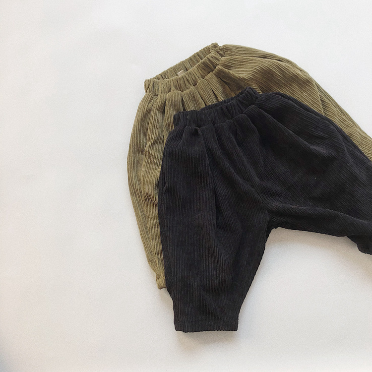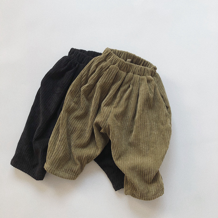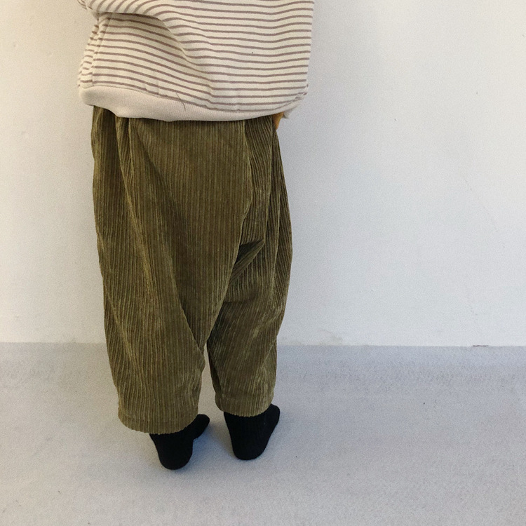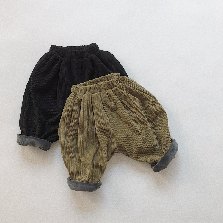 질감 질감 한국 아동복 가을 및 겨울 어린이 코듀로이 기모 당근 바지 소년 소녀 따뜻한 바지