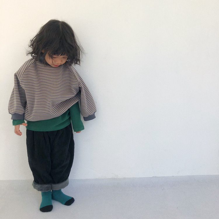 질감 질감 한국 아동복 가을 및 겨울 어린이 코듀로이 기모 당근 바지 소년 소녀 따뜻한 바지스토어 가기