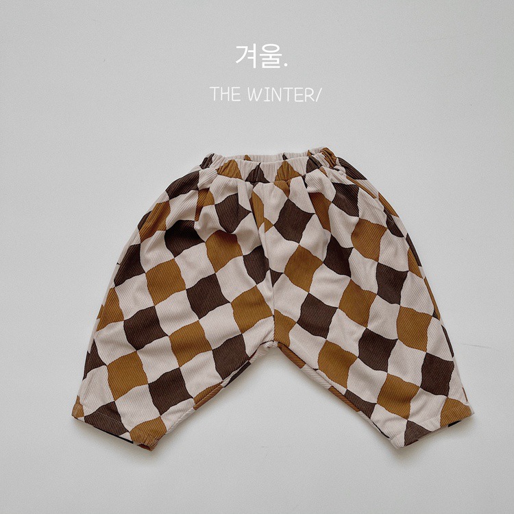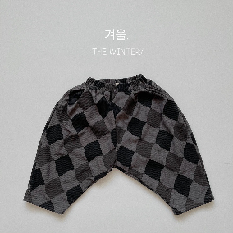 겨울 새로운 한국 스타일 어린이 벨벳 당근 바지 소년과 소녀를위한 마름모 격자 무늬 벨벳 커프 바지 복고풍 두꺼운스토어 가기
