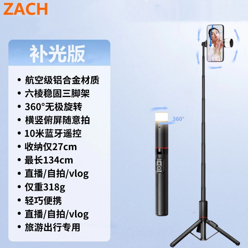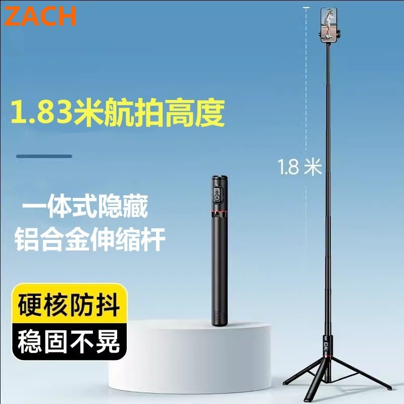 ZACH 점프 스틱 휴대 전화 블루투스 셀카 스틱 1.77 m 바닥 삼각대 휴대용 사진 데스크탑 합금 브래킷