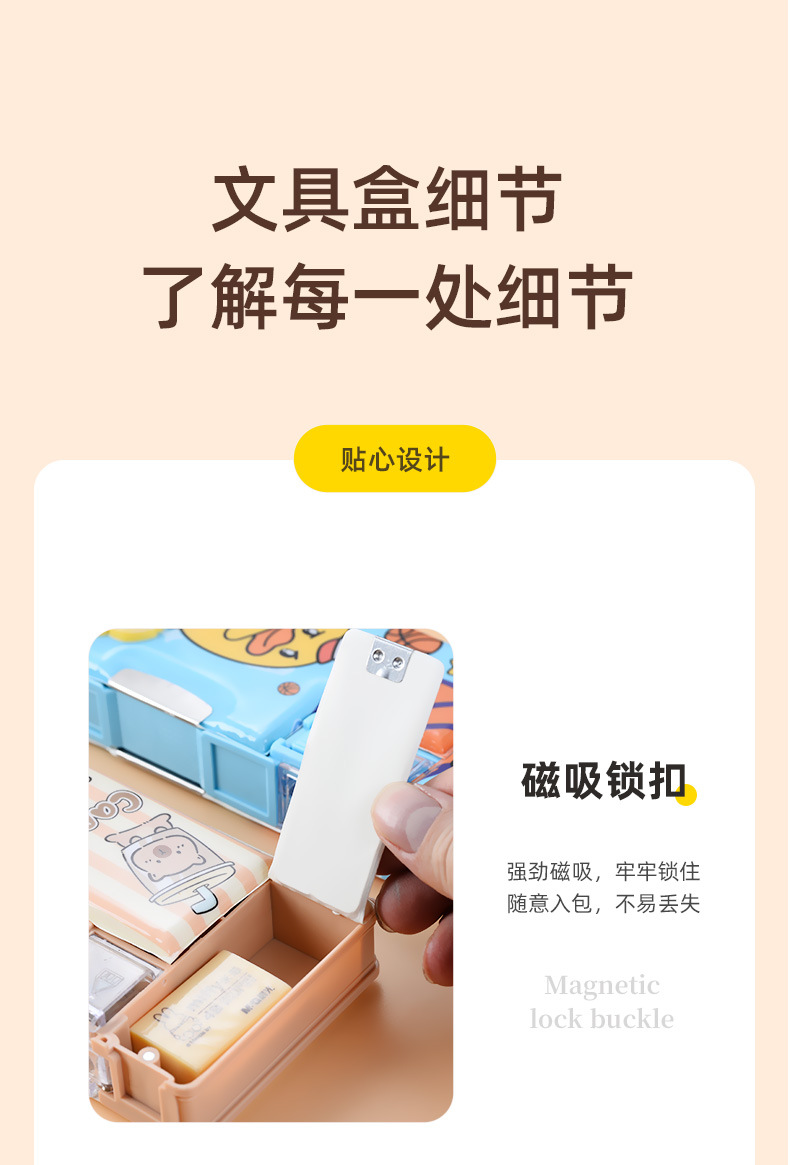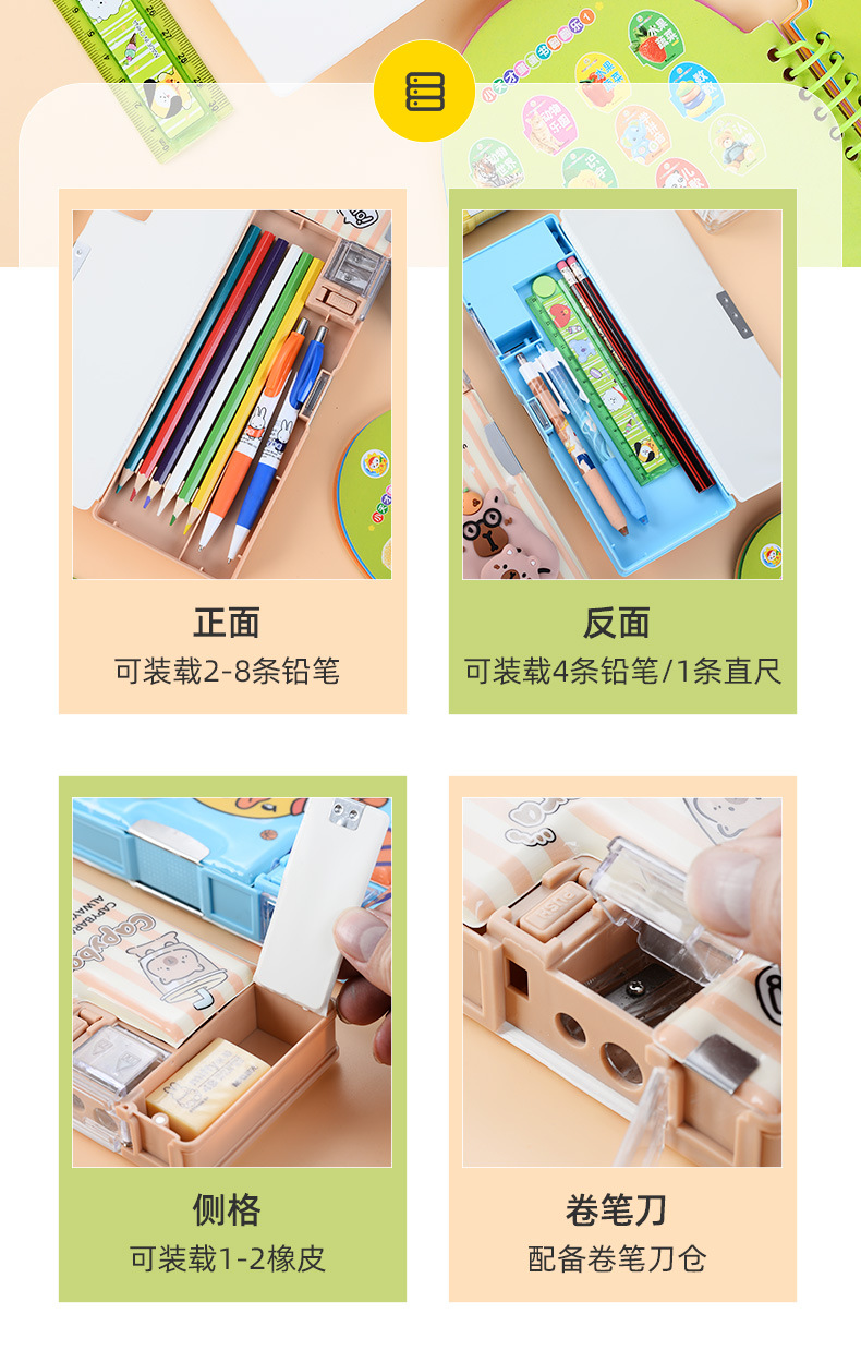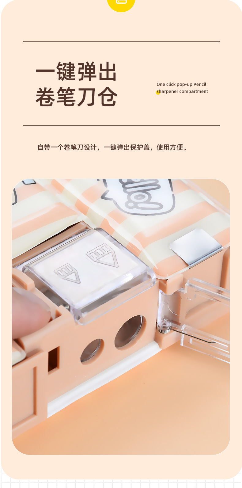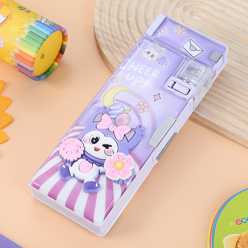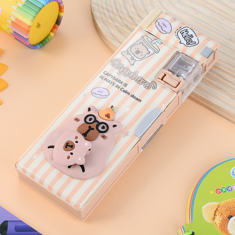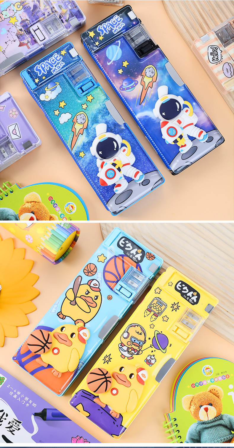재미 있고 귀여운 만화 회전 학생 다기능 연필 깎이 문구 상자 대용량 더블 레이어 문구 보관 펜 상자