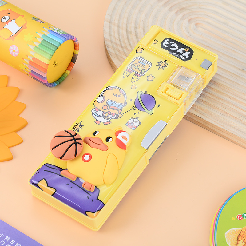 재미 있고 귀여운 만화 회전 학생 다기능 연필 깎이 문구 상자 대용량 더블 레이어 문구 보관 펜 상자스토어 가기