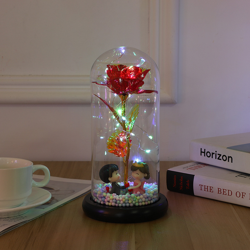 공장 재고 국경 영원한 꽃 휴일 선물 창조적 인 선물 금 호일 꽃 창조적 인 유리 커버 공예 장식품스토어 가기
