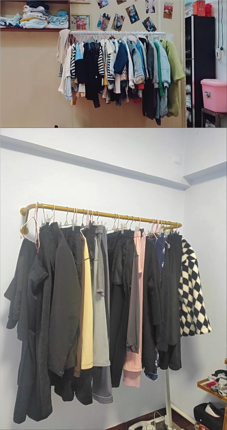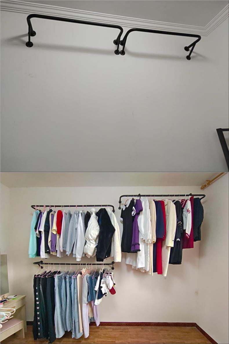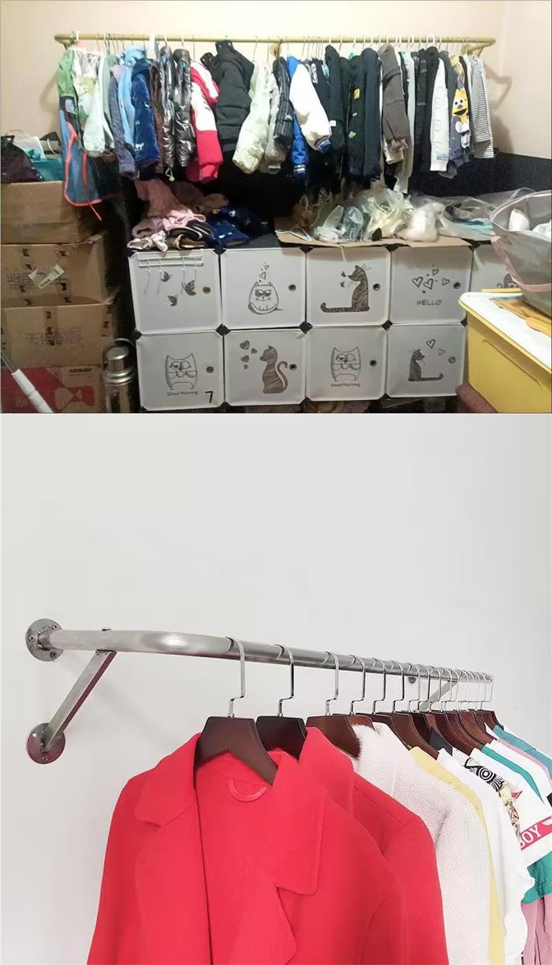 옷걸이봉 고정형 측벽옷걸이 벽걸이형 옷걸이봉 실내 간이 스테인레스 스탠드 코트 및 모자 Jueqin스토어 가기