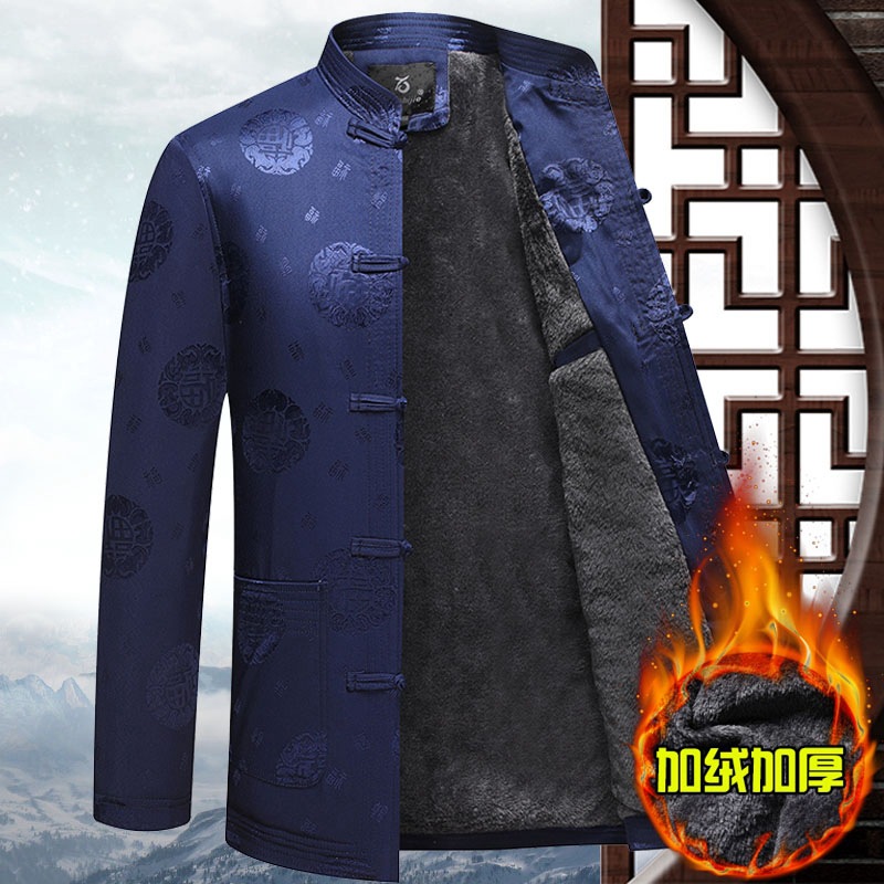 중년 및 노년 남성을 위한 당나라 정장, 가을 겨울 면 패딩 재킷, 중국식 벨벳 두꺼운 아빠 코트, 할아버지 생일 옷스토어 가기