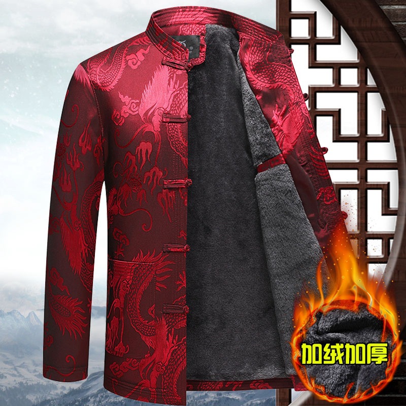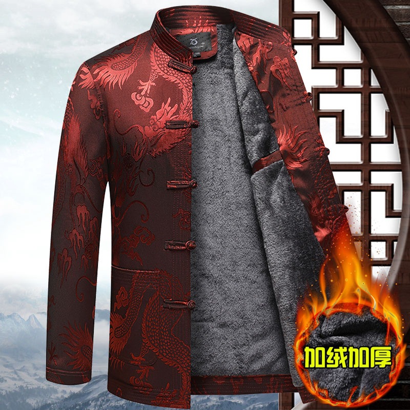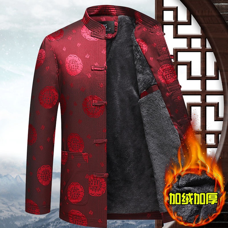 중년 및 노년 남성을 위한 당나라 정장, 가을 겨울 면 패딩 재킷, 중국식 벨벳 두꺼운 아빠 코트, 할아버지 생일 옷